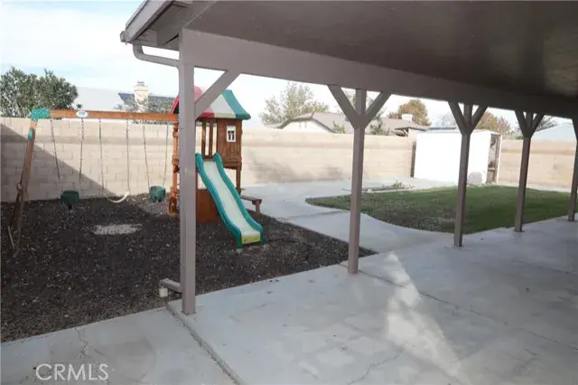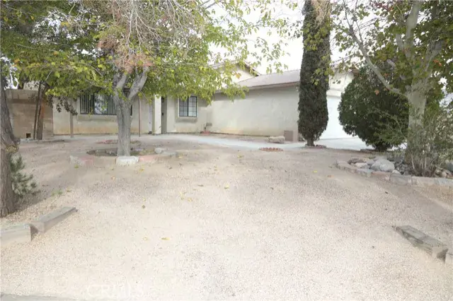 Great affordable family home with lots of upgrades!! This home features 4 bedrooms and 2 bathrooms with desert landscaping to save on water. As you enter the home you will be greeted with fresh neutral color paint on the walls, laminate flooring in the living room, kitchen, hallway and master bedroom. All other bedrooms are carpeted. The kitchen has subway tiles for a backsplash. quartz countertops, and an added buffet counter for extra storage and counter space. Hallway bathroom has tile flooring and a tiled shower. Master bedroom has laminated flooring with the master bathroom having tiled flooring. Master bathroom also has quartz countertop, an upgraded tiled shower with a niche. Backyard features a large, covered patio, a swing set, and a shed. In the garage you will find a newer water heater and heater. Great commuter home for Edwards Air Force Base.