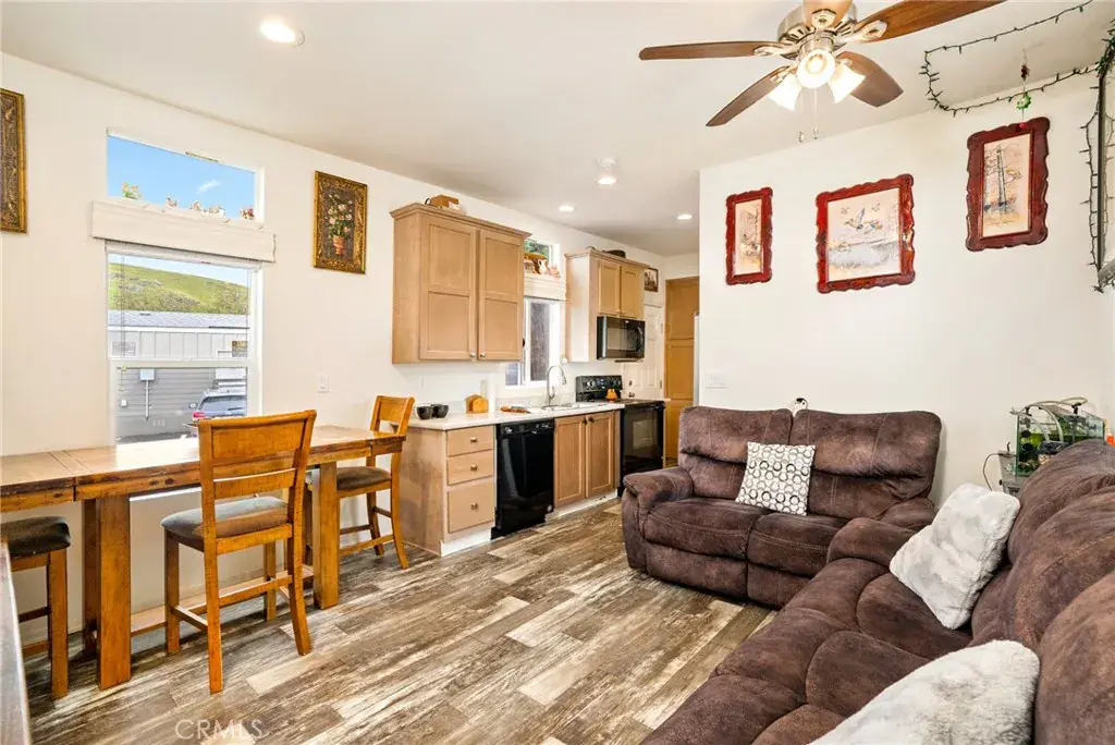 Searching for affordable housing in San Luis Obispo? A wonderful location to downtown, this attractive two-bedroom, one-bathroom, 2019 manufactured home, ideally located near all local amenities. Enjoy an open sophisticated kitchen with a mix of black and stainless appliances in a fully functional kitchen. This home also features water-resistant laminate wood flooring for easy maintenance. Positioned on a corner lot at the rear of the community, it offers beautiful views of the hills and mountains. The property also includes two parking spaces, extra storage with a shed, and front and side yards for added outdoor enjoyment. One of the lowest priced homes in San Luis!