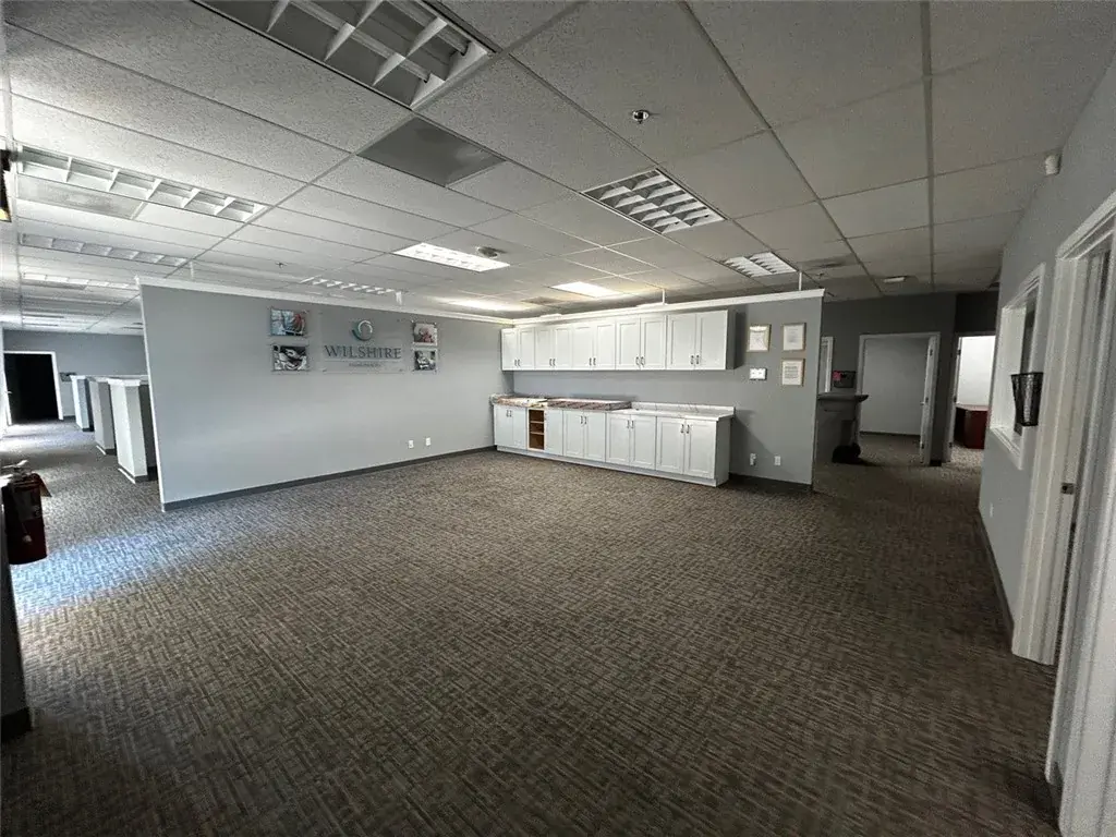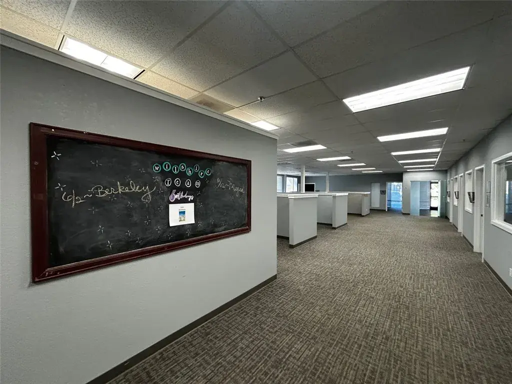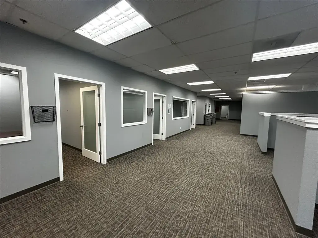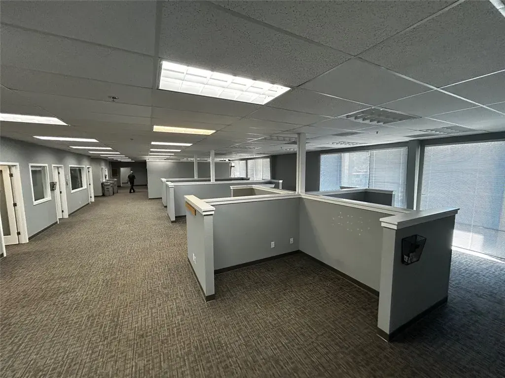 This single level office suite is comprised of nine private offices, two large meeting rooms, open work areas, and a breakroom.