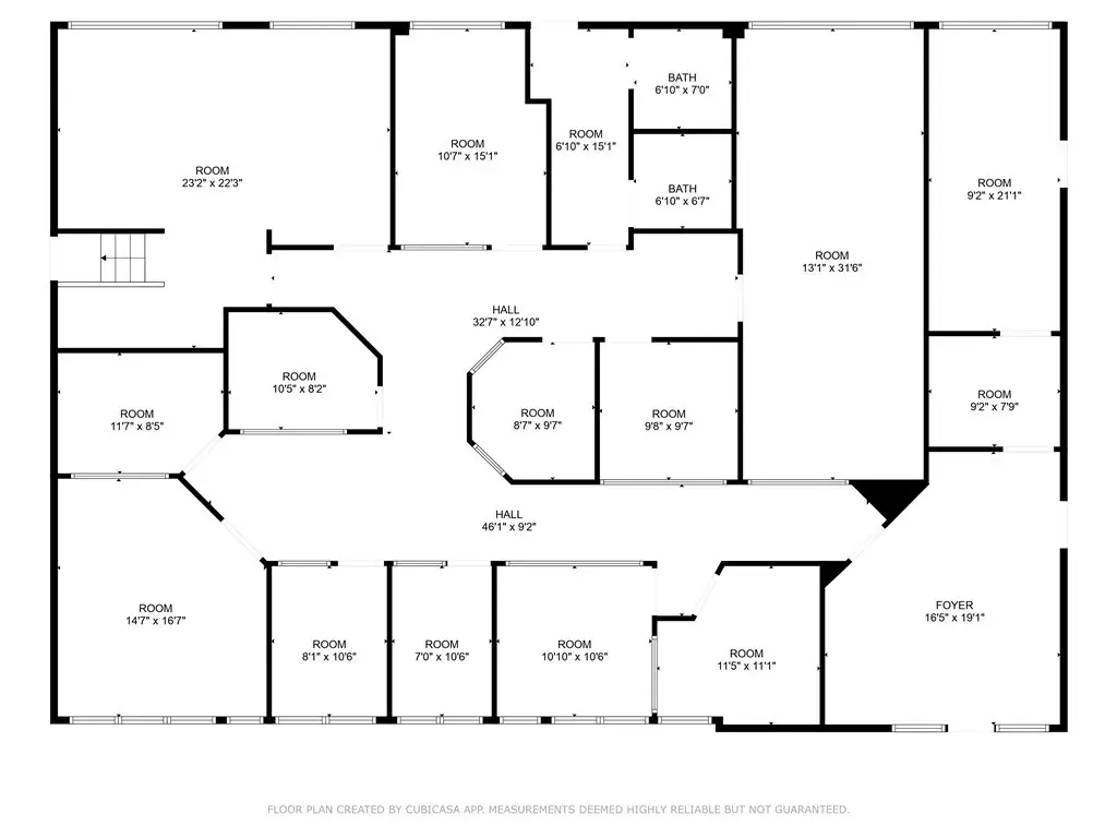 A turn-key office suite consisting of several private offices, a reception area, and two large meeting rooms.