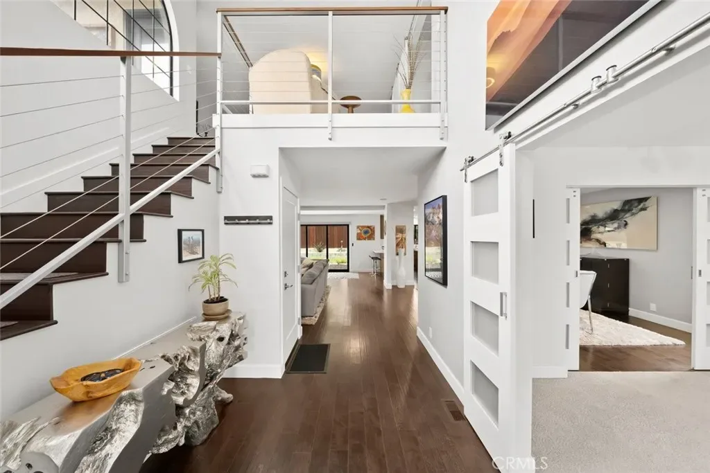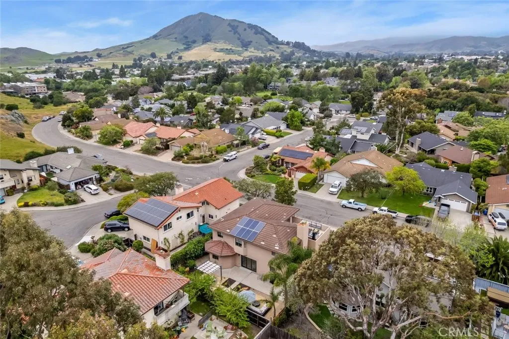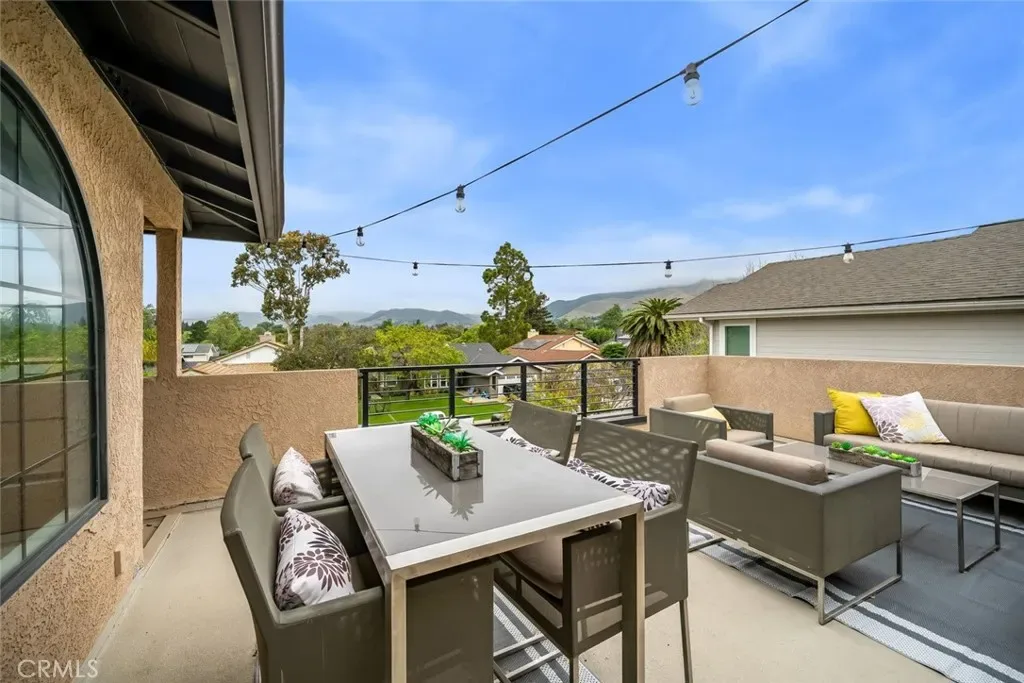 Spectacularly remodeled and thoughtfully designed, this stunning home offers almost 2,800 square feet of open, functional living space in one of the most coveted pockets of San Luis Obispo. Featuring 3 bedrooms, 3 bathrooms, a dedicated office or bonus room, and an upstairs loft, this residence perfectly blends modern comfort with everyday livability. Ideally located just a block from Meadow Park, scenic walking paths, and nearby hiking trails, the home provides effortless access to both nature and downtown amenities—capturing the very best of the San Luis Obispo lifestyle. Step inside to soaring ceilings, designer lighting, and a striking modern railing that frames the upstairs loft. The main living level showcases beautiful wood flooring throughout and a completely remodeled kitchen outfitted with soft-close cabinetry, quartz countertops, island, a stylish tile backsplash, and ample space for both cooking and entertaining. The spacious dining and living areas are anchored by a modern gas fireplace with a sleek tile surround, creating a warm yet contemporary focal point. A three-panel sliding door opens to a beautifully landscaped backyard featuring a fire pit area and plenty of space for gardening or relaxing outdoors. Also on the main level, a generous office or bonus room—complete with a sliding barn doors and large picture window—offers flexibility and inspiring views of the surrounding neighborhood and mountains. Upstairs, a custom wire-railed staircase leads to a versatile loft and sitting area with direct access to a spectacular view deck overlooking Cerro San Luis Obispo, the park, and the surrounding hills. The luxurious primary suite features a large picture window, walk-in closet, private access to the deck, and a fully remodeled en-suite bathroom with dual vanities, a frameless glass shower with a rain showerhead. Two additional bedrooms share a well-appointed upstairs bathroom. Additional highlights include a two-car garage with a modern glass door and epoxy flooring, as well as a dual-zone heating and air conditioning system for year-round comfort. With striking modern curb appeal, clean architectural lines, a contemporary glass garage door, and drought-resistant landscaping, this home truly stands out. All of this is set in a peaceful neighborhood just moments from town, parks, and trails—offering the perfect balance of tranquility and convenience.