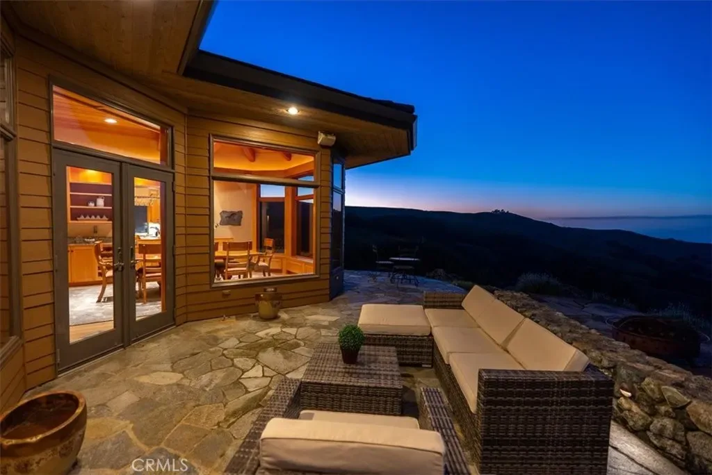 Set high above the landscape in Prefumo Canyon, this extraordinary 56± acre private estate offers commanding, unobstructed views of the Pacific Ocean, Morro Rock, the Seven Sisters, Irish Hills, and the city lights of San Luis Obispo—one of the Central Coast’s most iconic vantage points. Despite its peaceful seclusion, the property is located approximately 5.5 miles from downtown San Luis Obispo, about 20 minutes to Avila Beach, and within easy reach of Morro Bay, Montaña de Oro State Park, wineries, shopping, schools, and the regional airport. The custom-built main residence (2004) is thoughtfully designed to embrace its setting, featuring vaulted tongue-and-groove cedar ceilings, walls of glass, skylights, and seamless indoor-outdoor flow. The flexible floor plan includes four bedrooms, three bathrooms, a media room, office, and bonus room or optional fifth bedroom, all arranged to maximize privacy and views. The great room is anchored by a sculptural serpentine stone wall built from on-site stone, a gas fireplace, wraparound windows, and French doors opening to panoramic patios. The kitchen and dining areas offer vaulted beam ceilings, a generous center island, expansive picture windows, and direct access to outdoor entertaining spaces. The main-level primary suite, privately positioned in its own wing, features exposed beam ceilings, patio access, and a spa-inspired bath with a travertine steam shower and soaking tub oriented toward the horizon. A detached cabin, fully separated from the main residence, provides a full kitchen, bedroom, bathroom, living and dining areas, laundry, and dedicated storage/workshop space—ideal for guests, extended stays, or multigenerational living. The land invites exploration with private hiking, abundant wildlife, and ever-changing natural scenery. The property is extensively engineered for comfort and resilience, offering multiple water sources, filtration and storage systems, owned solar with battery backup, a propane-powered generator, fire-resistant construction, and infrastructure designed for reliable year-round living.