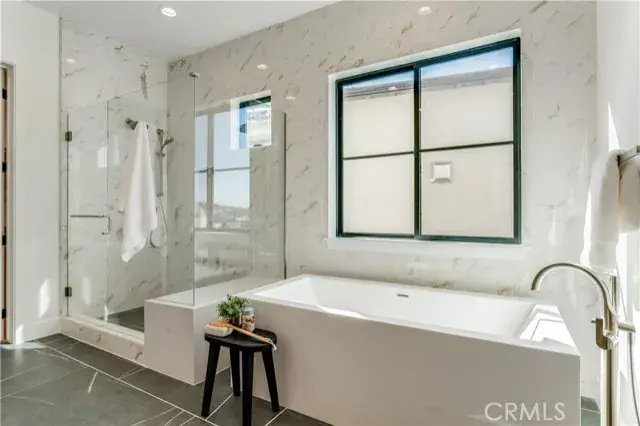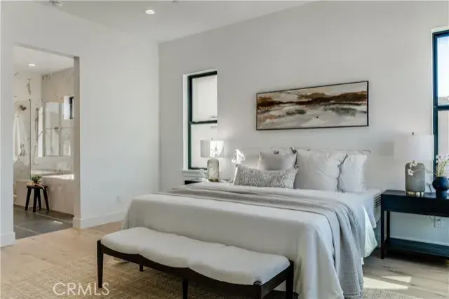 The Primary Suite and the two additional bedrooms all have private bathrooms. Designer selected lighting, LED recessed lighting, a gas stub for future BBQ, Conduit, and box for future electric car charger, Keyless Emtek Entry System, Nest 3rd generation-multiple zoned heating and air conditioning—tankless water heater with recirculating pump and structured wiring & multi-media outlet in Great room and all bedrooms.