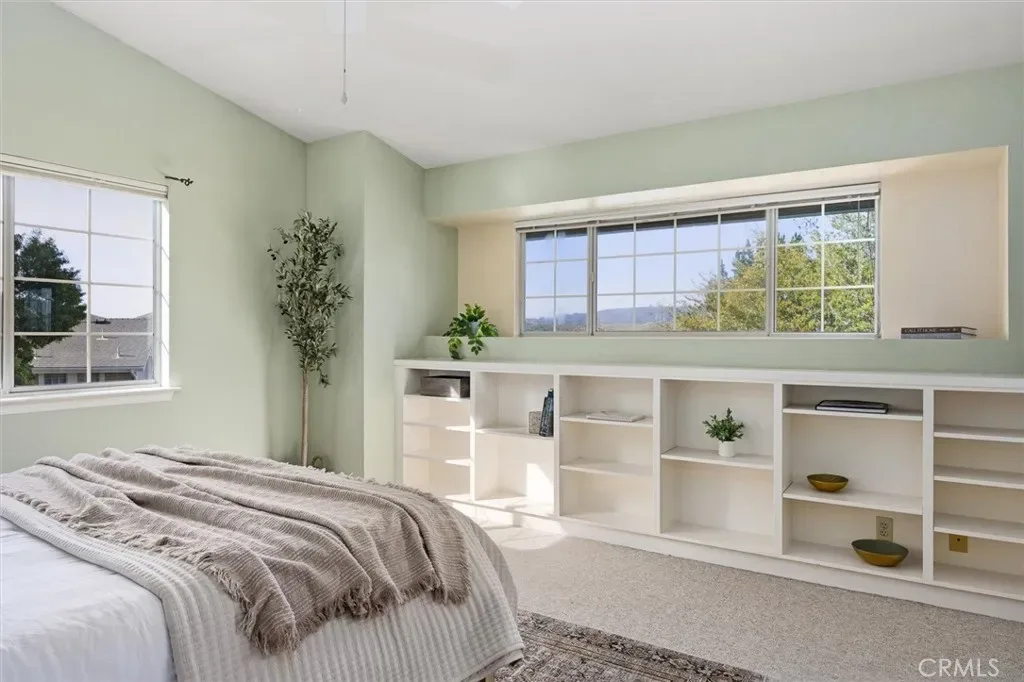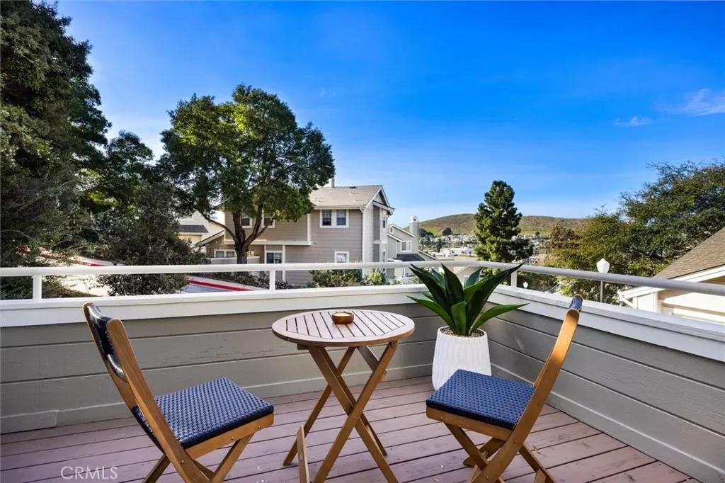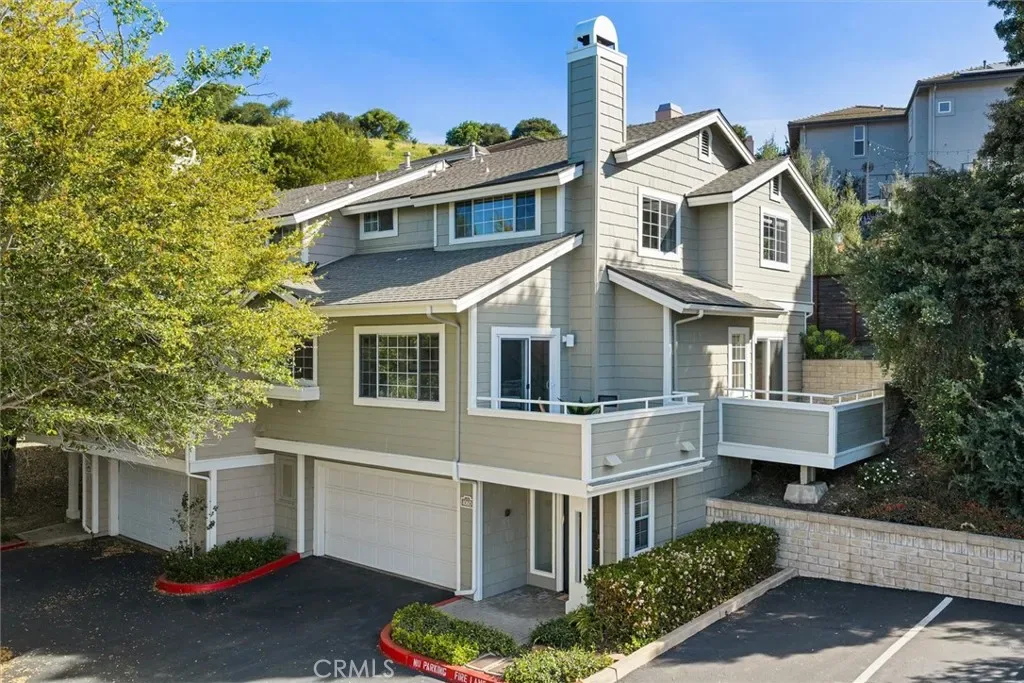 Wonderful SLO location, with views! Located in San Luis Obispo’s “Banana Belt”, this gorgeous 3 bedroom + 3 bath condo + 2-car garage is in the sought-after Leland Terrace community. Surrounded by mature trees and landscaping, 1060 Trevor Way is ideally situated for privacy and designed to capture views. On the main level, the open floor plan welcomes you into the spacious living room featuring vaulted ceiling, a cozy fireplace, built-in shelving and window seat, access to a deck, and views of South Hills. The light and open feeling continues to the dining area with built-in storage buffet and wall shelving. The kitchen has plenty of storage and new appliances including a new stainless-steel refrigerator, range, microwave, and vent hood. The bedroom on this level (can easily flex as an office) has a French door entry, beautiful bamboo floors, access to the second deck and an adjacent full bathroom with shower tub. You’ll appreciate the extra-large under-stair storage closet here. The stairway with its airy vaulted ceiling and skylight leads upstairs to 2 more bedrooms and laundry area. The light-filled primary suite features thoughtful built-in shelving, vaulted ceiling, and enhanced views; En-suite bathroom with dual vanity and custom walk-in shower makes this an inviting retreat. The third bedroom and full bathroom complete this comfortable level. Roomy 2-car garage has an EV charger, lots of built-in storage and an optimal area for wine storage. The nearly new HVAC system with AC adds terrific value! **Leland Terrace is adjacent to Terrace Hill with hiking trails and sweeping views where locals gather for sunsets. Enjoy discovering nearby the pedestrian bridge to downtown and the Amtrak station, SLO High, Sinsheimer Park, and the rail bikeway. Embrace the SLO life… Don’t miss this one, call your Realtor today!