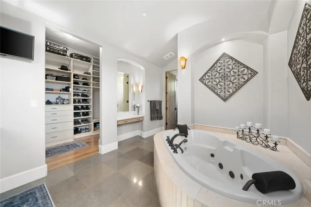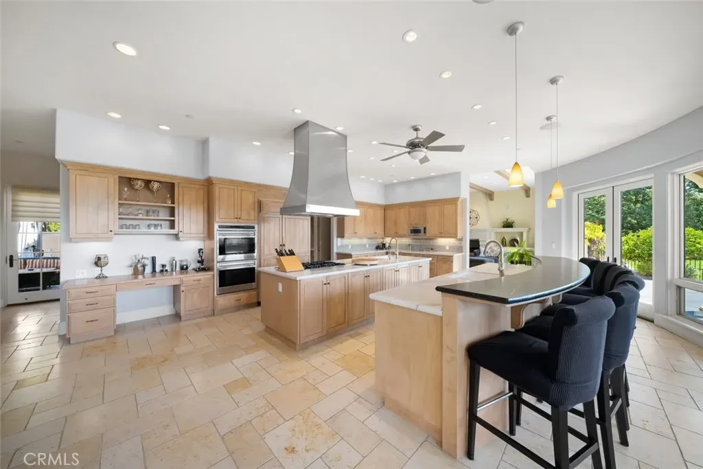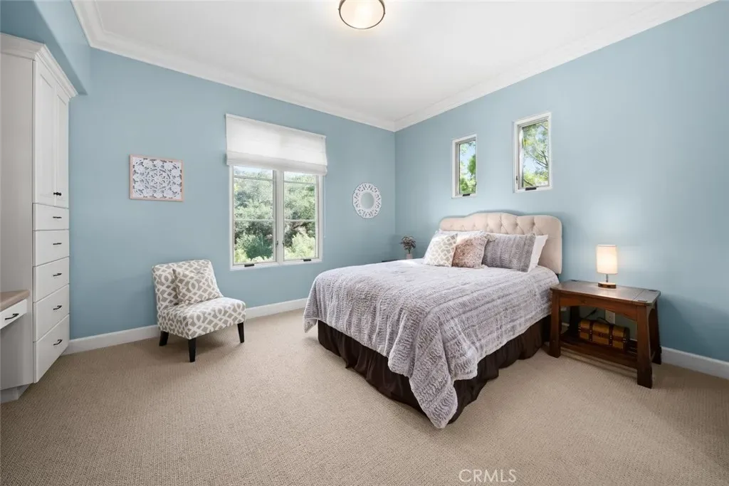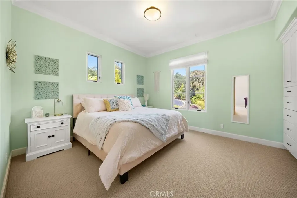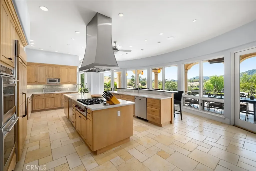 Tucked behind the gates of Bassi Ranch in the serene Avila Valley, this extraordinary property combines privacy, luxury, and timeless Tuscan-inspired architecture. Entering the gated community and turning down the private driveway, the remarkable views are sure to capture your attention. The property is recessed below street level, the residence is hidden from view, offering privacy while framing sweeping views. The home sits on a 3-acre parcel. The home has exquisite amenities such as pre-paid solar and battery a backup system, infinity edge pool, fully landscaped and a spacious 4 car garage. A grand motor courtyard welcomes guests with room for over 14 vehicles. The custom floor plan provides the primary suite, a large office, a guest suite accessing the large, secluded courtyard and all living areas on the entry level to provide easy living. The house offers an extravagant entry with two story ceilings. The living room provides grand ceilings with wood beams and sprawling views of the valley and rolling hills. It also includes a wood burning fireplace and surround sound. The chef’s kitchen, designed for both function and beauty, has dual islands, double ovens, two sinks, two dishwashers, striking marble countertops, and space for everyone to cook and congregate together. The kitchen has beautiful picture windows overlooking the scenic Avila Valley and infinity pool which showcases two fire pits, speakers and ambient lighting. The kitchen and living room flow out into the back yard, where the heated infinity pool and spa overlook the horizon and surrounding valley views. The outdoor patio includes a built-in BBQ and sink. The partially covered patio area has built-in heaters. The primary suite is a sanctuary with an adjoining office, a large walk-in closet, and a spa-worthy bathroom. The shower features triple shower heads and a built-in bench. The primary bedroom leads to a private outdoor patio, adjacent to the pool and back yard. The spacious dining room is adjacent to the kitchen and opens to the private side patio. Upstairs provides a large den with sweeping views and two large storage rooms. It also has a deck to relax or greet your visitors. The two wings on the upper-level offer 4 total bedrooms and 2 guest bathrooms designed in a jack and jill orientation for ease and convenience. This estate offers true elegance and showcases the essence of luxury living.