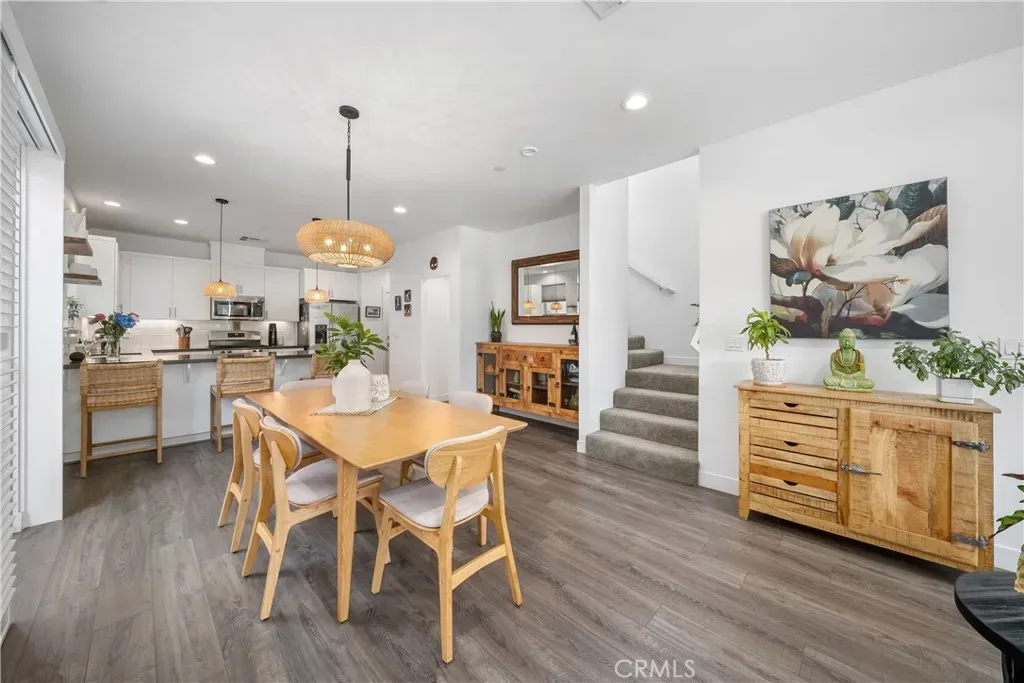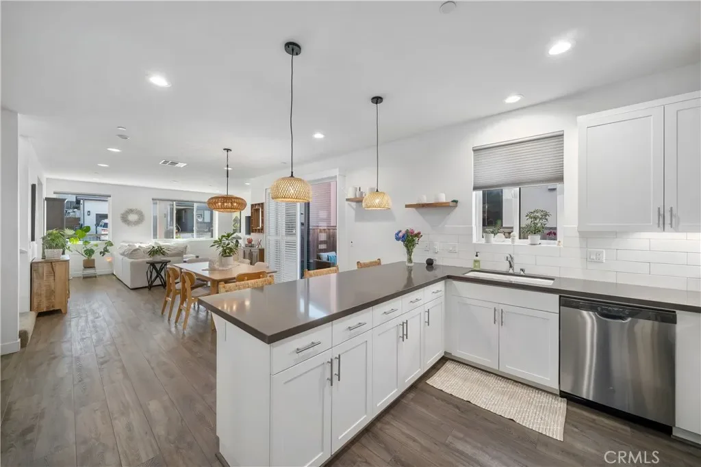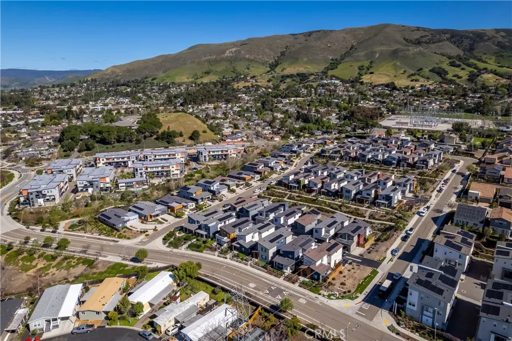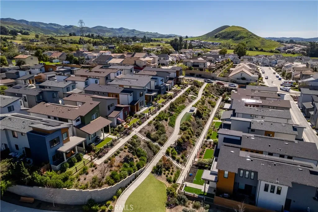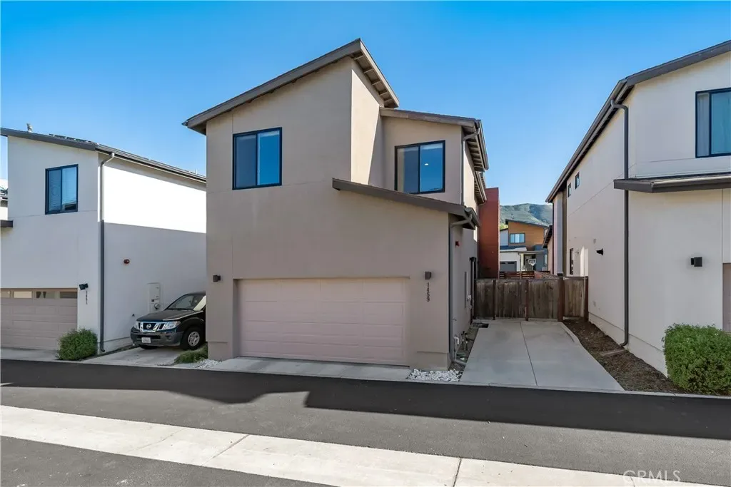 Contemporary mid-century modern inspired Noveno residence. Set amongst the backdrop of Islay Hill, the ninth peak of the iconic chain of Nine Sisters, this home is ideally situated to enjoy the best of the Central Coast lifestyle. Providing convenient access to shopping, dining, and the Thursday evening Farmers’ Market in downtown San Luis Obispo, scenic hiking and biking trails, and beautiful coastal destinations, this property is also just minutes from SLO County Regional Airport. Offering approximately 1,979 square feet of living space, the home includes three bedrooms, three bathrooms, and a versatile loft designed to accommodate today’s evolving needs. The inviting main level features luxury vinyl plank flooring, smooth-finish interior walls, and abundant natural light throughout the spaces. The living room is a comfortable space to unwind after a day at the beach or mountain biking. The adjacent dining room is highlighted by a woven wicker hanging fixture and an 8-foot sliding glass door with plantation shutters that opens to a private outdoor setting featuring a concrete and paver patio with synthetic turf, ideal for entertaining. The thoughtfully designed kitchen blends style and functionality with quartz countertops, a subway tile backsplash, shaker-style white cabinetry, and natural fiber pendant lights. A GE stainless steel appliance package including refrigerator, microwave, dishwasher, and gas range complements the space, while a walk-in pantry with glass door and breakfast bar for casual dining add convenience. The second level offers three bedrooms along with a flexible loft that can easily serve as a home office, media room, or reading retreat. The primary suite features a walk-in closet with California Closet organizers and mirrored door, along with a luxe bathroom including a dual-sink vanity with quartz countertop, walk-in shower with tiled surround, and a private water closet. Two secondary bedrooms share a full bath with dual-sink vanity, quartz countertops, tile flooring, and a tub/shower. A conveniently located laundry room includes storage cabinetry and an included LG washer/dryer. Additional highlights include a two-car garage plus a dedicated parking space, covered front porch, and Rheem tankless water heater. Residents of the Noveno community enjoy thoughtfully designed neighborhood amenities including community parkways, walking and bike paths, parks, and shared gathering spaces that encourage connection and outdoor living.
