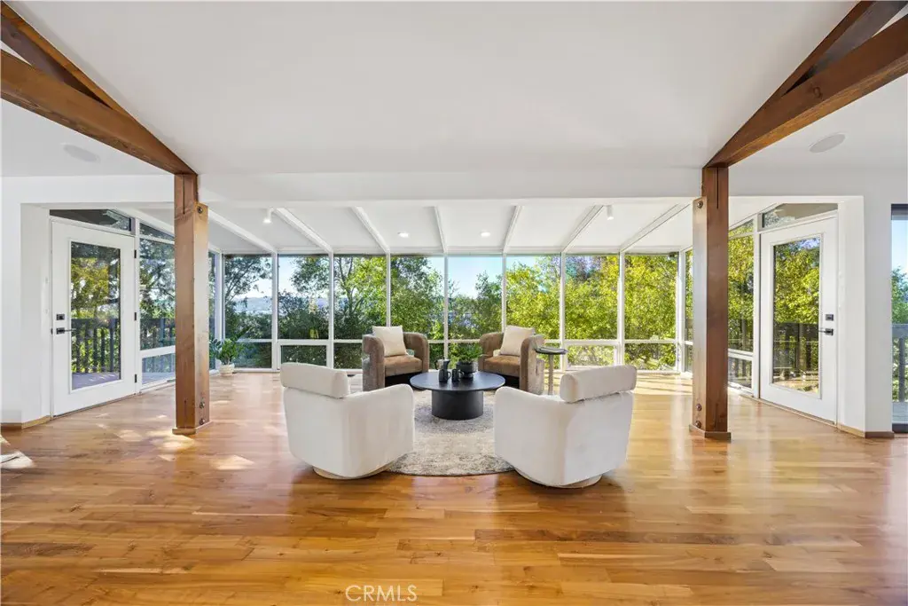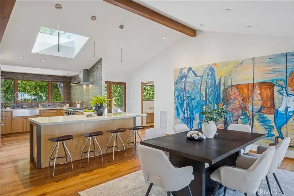 An architecturally refined mid-century modern home where clean lines, expansive glass, and thoughtful updates define 5 bedrooms, 3.5 baths, and approximately 3,663 square feet of light-filled living space on a generous 12,600± square foot lot, ideally located at the end of a quiet cul-de-sac within the highly sought-after Sinsheimer School District. Sweeping views of Cerro San Luis and Bishop’s Peak are integral to the home’s design, creating a dramatic and ever-changing backdrop. A bright, open floor plan highlights walnut hardwood flooring and expansive floor-to-ceiling windows that frame the surrounding landscape and invite the outdoors in. The living room is anchored by a statement fireplace with a stone hearth and flows seamlessly into the dining area and enclosed patio—an inviting setting for both everyday living and entertaining with iconic views. The modern kitchen pairs form and function with a generous center island and bar seating, state-of-the-art appliances, and a walk-in pantry. One wing of the home offers three bedrooms with direct access to a rear deck and a full bath, while the opposite wing includes an additional bedroom and full bath with access to a private patio—ideal for guests, flexible living, or a home office. A powder room near the entry is seamlessly integrated into the home’s efficient layout. Upstairs, the primary suite serves as a serene retreat, featuring a spacious view deck, gas fireplace, and a spa-inspired en-suite bath with a standalone soaking tub and separate walk-in shower. The professionally landscaped grounds extend the home’s architectural aesthetic outdoors, with a tranquil fountain and fish pond, multiple outdoor seating areas, and ample space for gardening and entertaining. An exceptional expression of mid-century modern design, where thoughtful updates, panoramic views, and a coveted location come together with effortless sophistication.