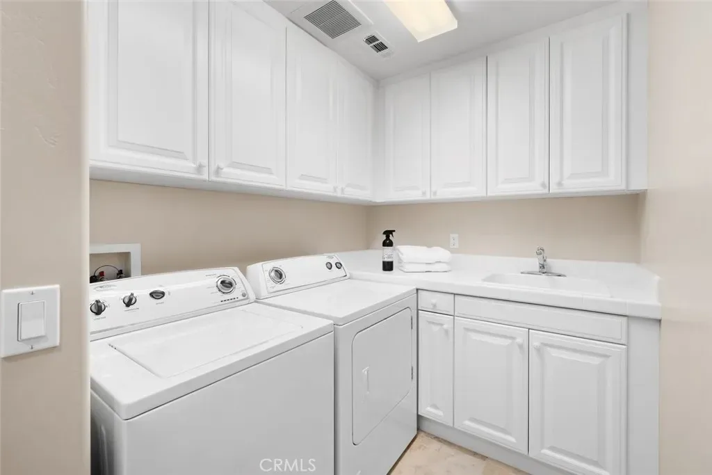 Additional accommodations are equally impressive. One bedroom boasts its own sitting room with a dry bar, microwave, and refrigerator, while another offers a beautifully functional ensuite. A well-equipped laundry center with utility sink, ample storage, and a convenient half bath complete the lower level.