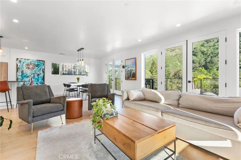 This expertly designed residence showcases approximately 3,250 square feet of thoughtfully curated living space, where an open-concept floor plan and expansive windows invite abundant natural light and frame picturesque mountain vistas. The warm, inviting interior is complemented by engineered oak hardwood floors, a refined modern aesthetic, and a light trowel stucco and composite siding exterior.
