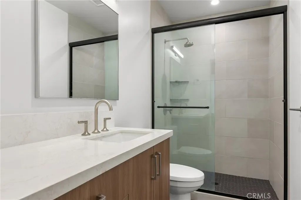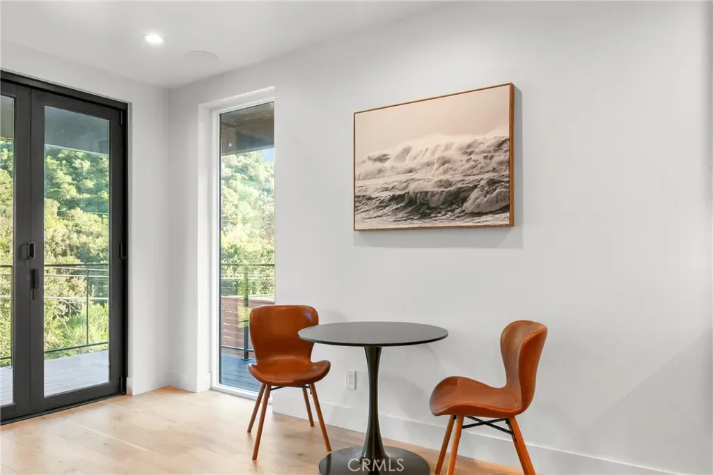 At the heart of the home, the chef’s kitchen is both striking and functional, featuring an oversized center island, Caesarstone quartz countertops, custom solid wood cabinetry, and premium professional-grade appliances, perfectly suited for both everyday living and elevated entertaining.