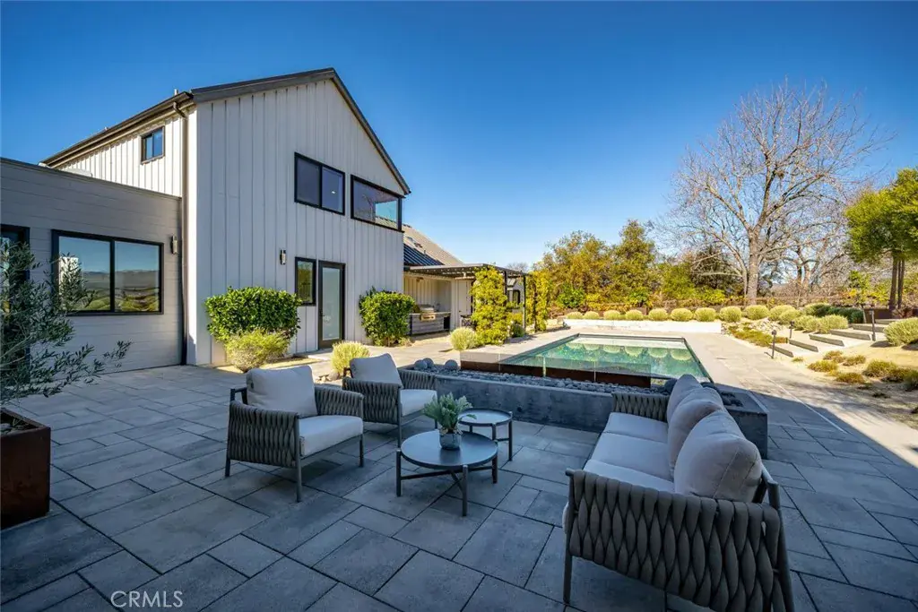 An exceptional luxury retreat within the exclusive gated community of Jespersen Ranch, this modern farmhouse estate sits in a private enclave of just five premier homes in San Luis Obispo. Positioned on over one acre of resort-style grounds with panoramic views of rolling hills, vineyards, and mountains, the property offers unmatched serenity while remaining only minutes from the vibrant heart of downtown SLO.