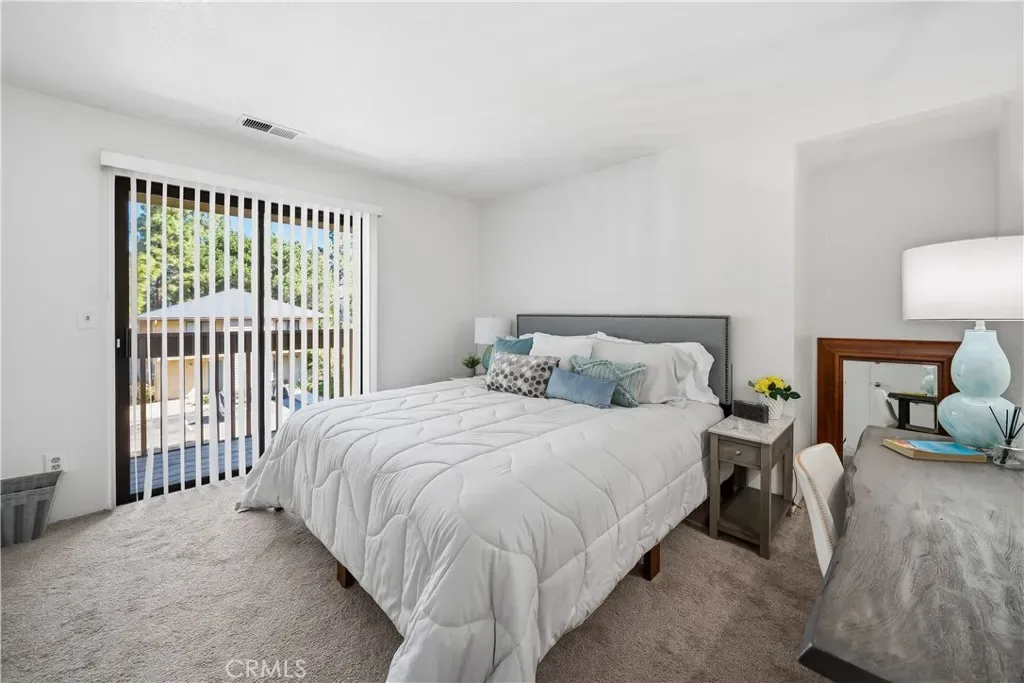 Situated adjacent to the full bathroom—appointed with a quartz countertop and updated fixtures—the primary bedroom offers an oversized closet and a balcony with peaceful views, while the secondary bedroom enjoys serene vistas of the surrounding open space and natural beauty.
