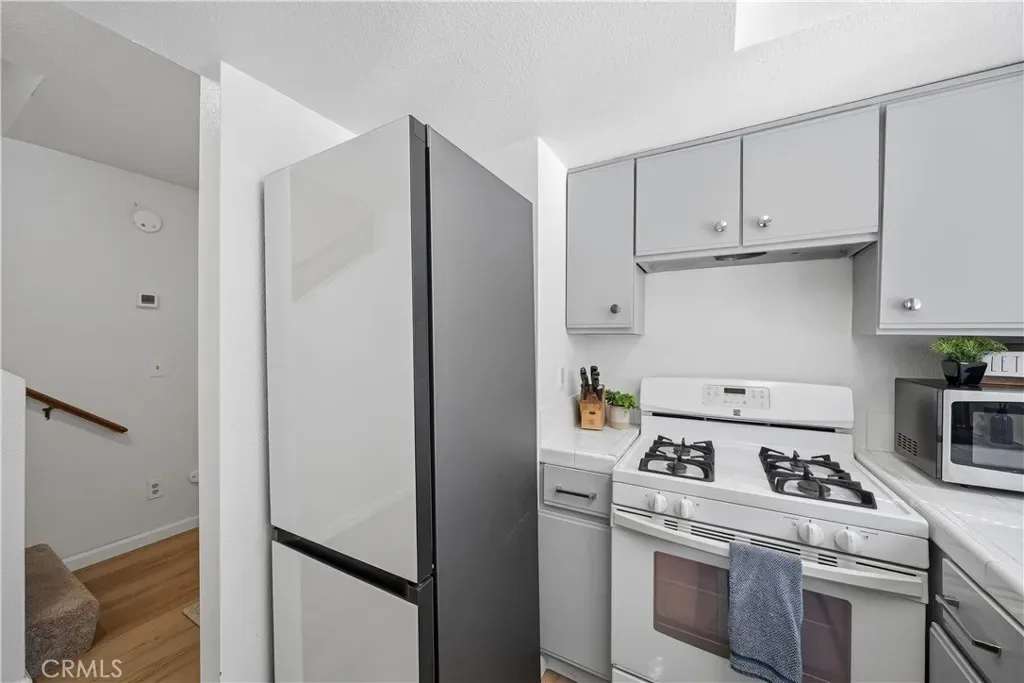 The private rear patio is ideal for weekend BBQs or simply unwinding at the end of the day. Additional highlights include window coverings, a large under-stair closet, a detached exterior storage closet, and an available bike locker. With only two units per building, these duplex-style condos offer just one shared wall.