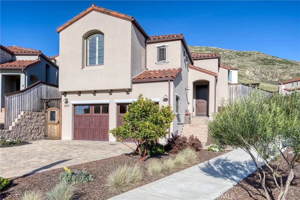 Inspired by the scenic hills and villages of Tuscany, the hillside community of Toscano is among San Luis Obispo’s premier luxury neighborhoods, known for its picturesque setting, scenic hiking paths, and distinctive hand-troweled stucco architecture. This beautifully appointed 3-bedroom, 3-bath home offers 1,826 sq ft of thoughtfully designed living space on a professionally landscaped 6,098 sq ft lot. A staircase entry leads to the main living level, where an open-concept floor plan creates a seamless flow for everyday living and entertaining. The living room with a corner fireplace opens to the dining area and a gourmet kitchen upgrade featuring LG appliances, a high-performance stainless steel hood, pot filler, and custom cabinet pull-out shelving. Patio access enhances the indoor-outdoor lifestyle. The primary suite provides a peaceful retreat with an ensuite bath and walk-in closet. A second bedroom, full bath, and laundry room complete the main level. The lower level offers a third bedroom and full bath—ideal for guests, office, or flex space—with direct access to the spacious garage. The multi-level backyard is designed for entertaining with beautifully landscaped seating areas, a pergola, and clear views of the surrounding hills. All just minutes from the vibrant downtown of San Luis Obispo, known for its renowned dining, shopping, and year-round community events.