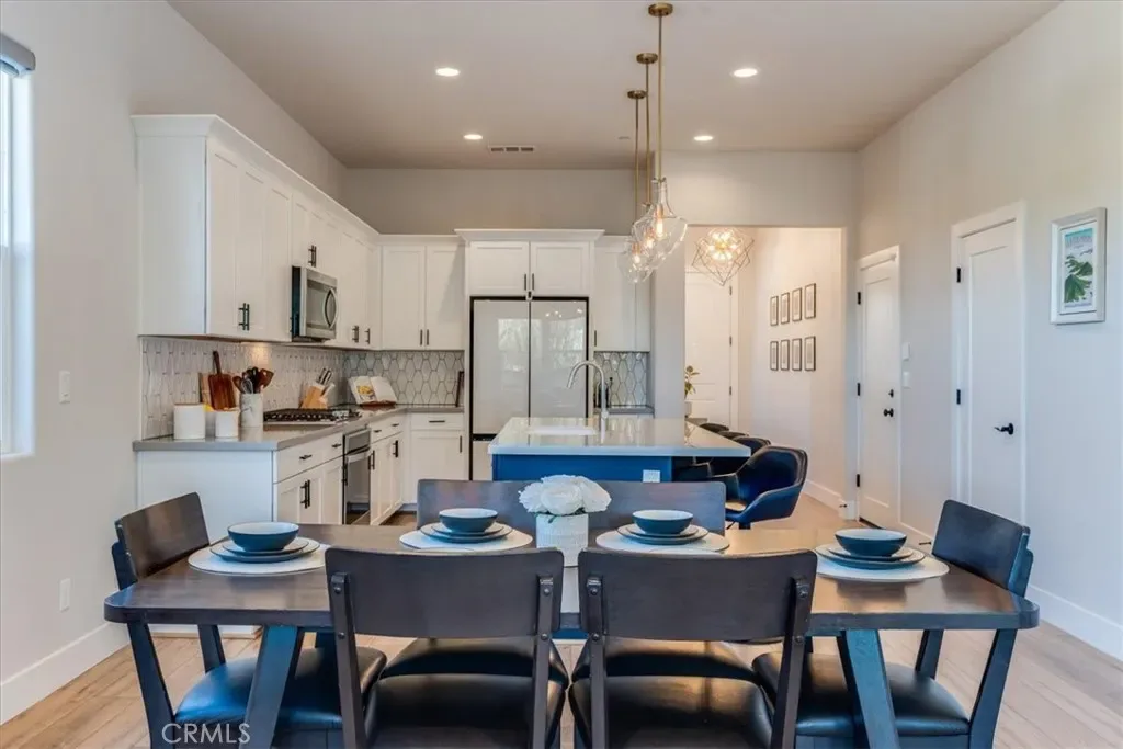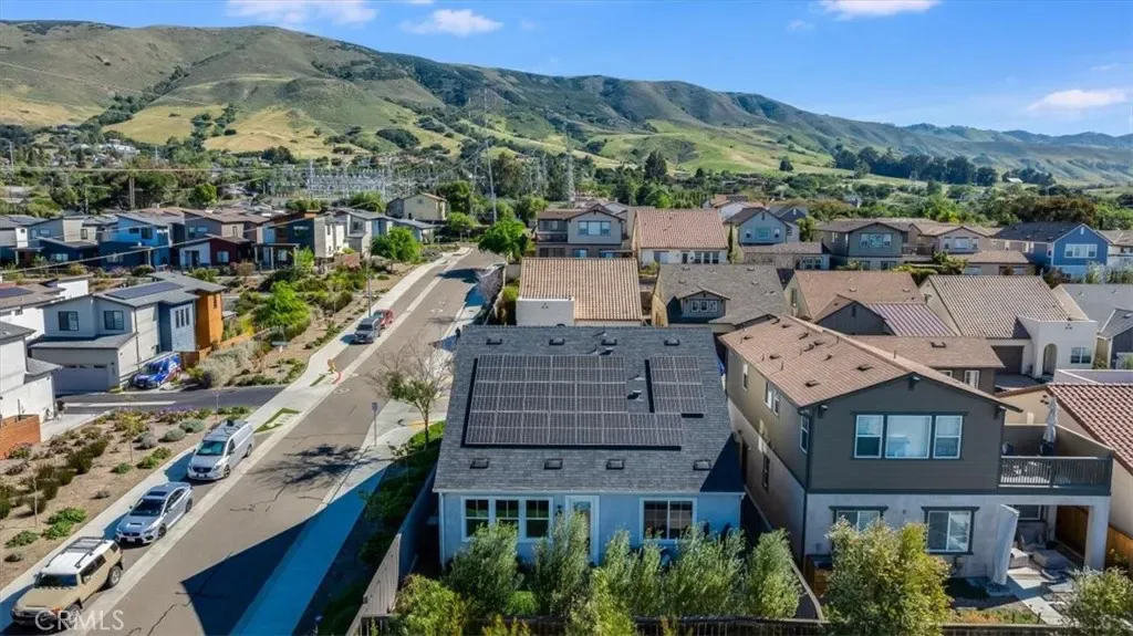 Crowning the South Morros development is this lovely and thoughtfully designed home. It was recently built in 2021, and features neutral colors, and bright light spaces. Easy blending of comfort and modern starts from the front porch, framed with a welcome flowering vine. Enjoy vistas of the Irish Hills to the south and west, Cerro San Luis, Bishops Peak, and South Hills Open Space due to elevated lot location. Also includes fully-owned solar system of 6.93kW (installed 2022) and Tesla charger in garage. The first-floor primary suite includes a gracious primary bath with double sinks, a soaking tub with separate shower, and walk-in closet. The central kitchen will delight as an entertainers’ dream and guests’ gathering place, with elegant two-tone cabinetry. Upstairs, beyond the custom open railing, are two generous bedrooms with walk-in closets. The lovely, landscaped patio, easily extends indoor to outdoor living. Rear yard highlights include perimeter fencing, synthetic turf, custom paver, and a gas stub for grilling. Location is ideal for access to downtown SLO, Edna Valley, sought-after schools, proximity to recreation and open space.