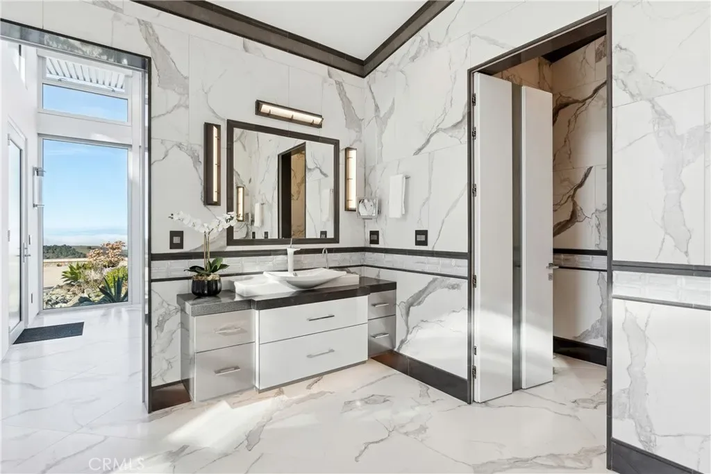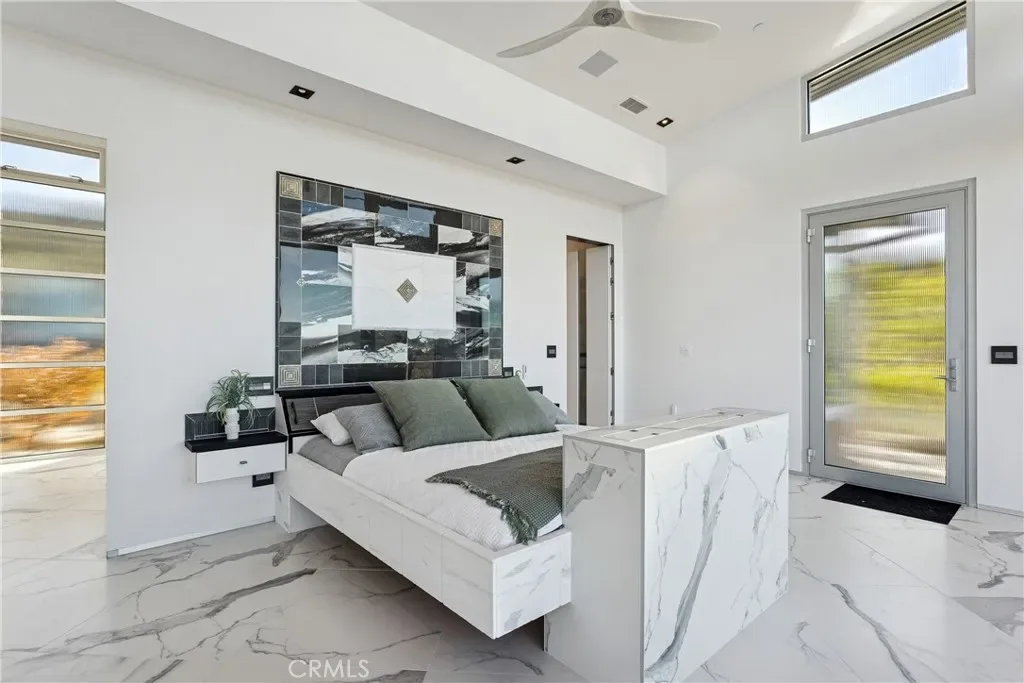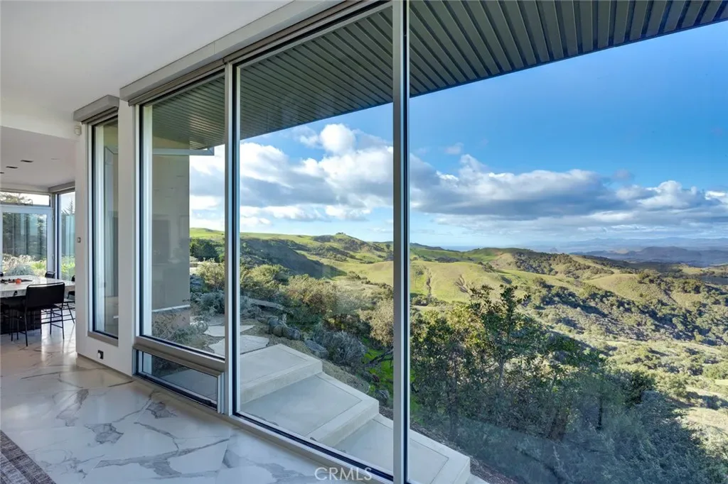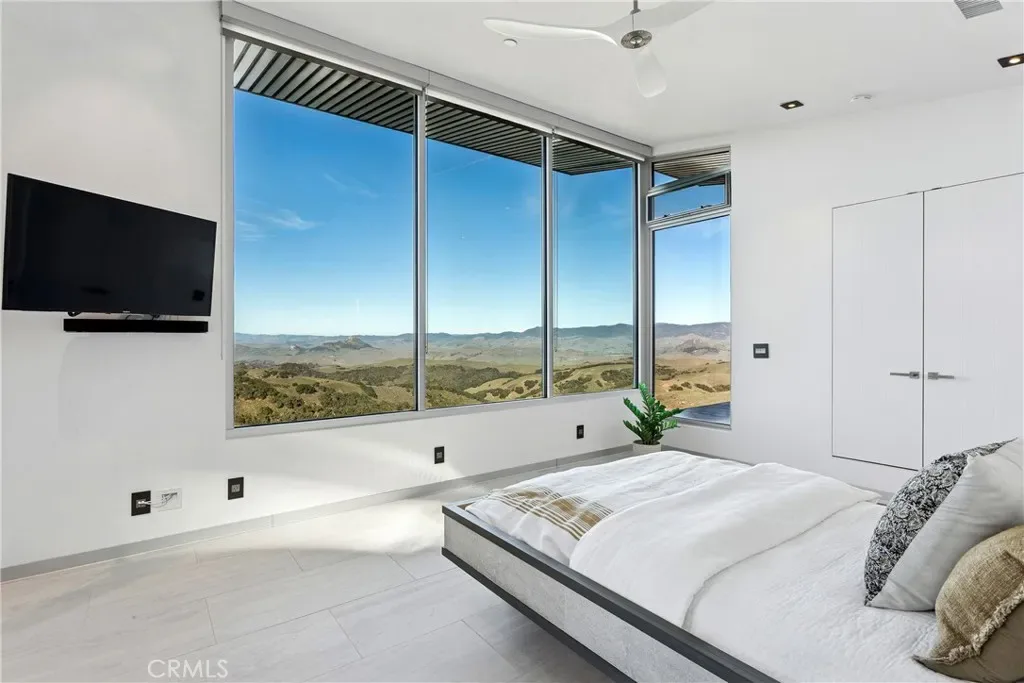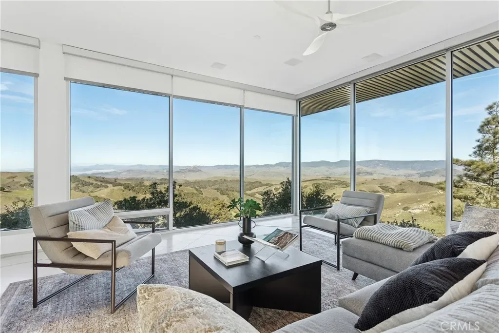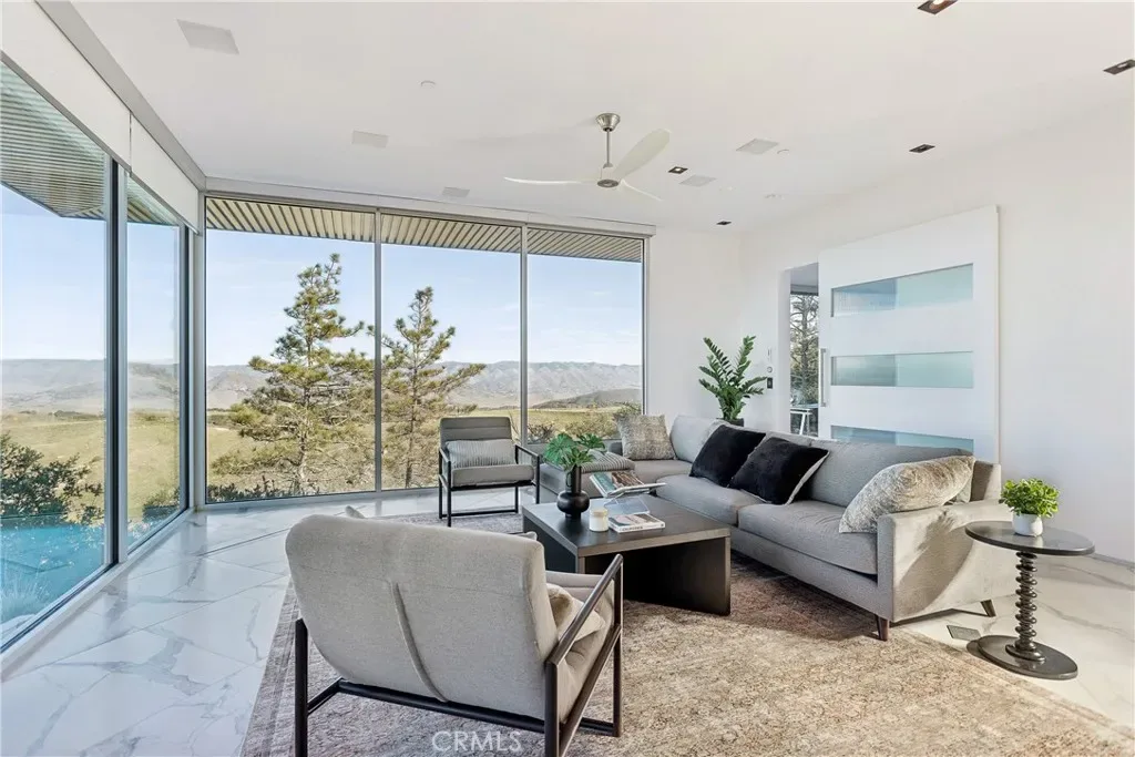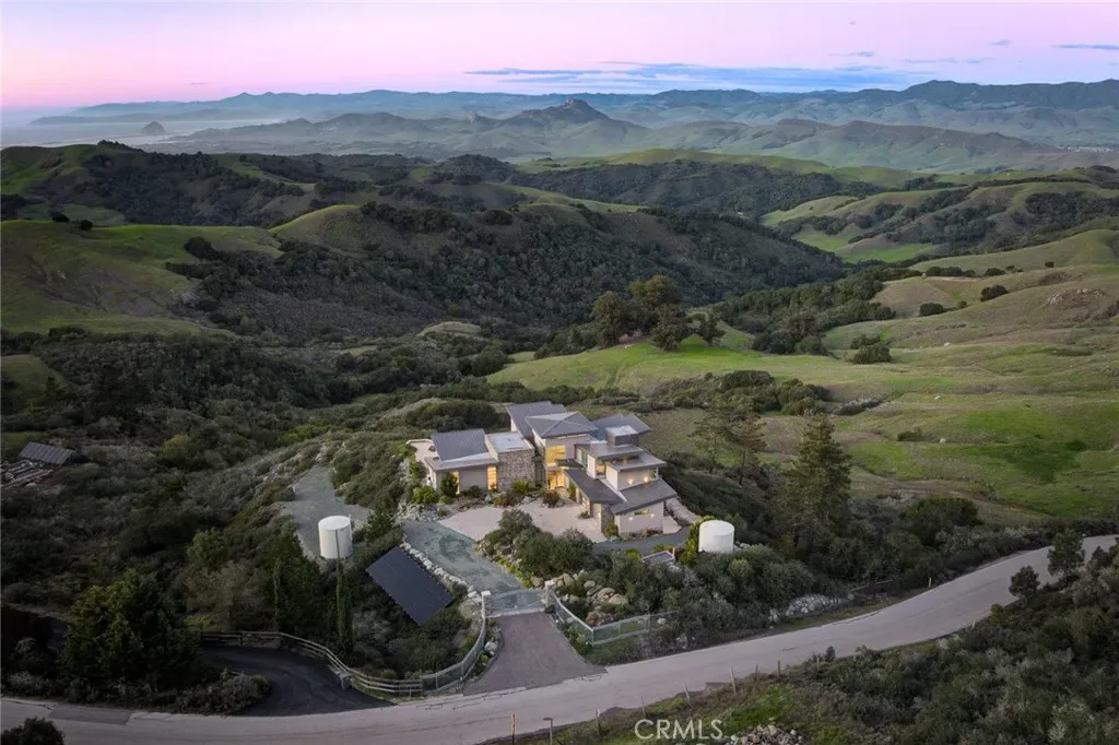 Where architectural masterpiece meets the horizon! This private hilltop estate is a modern, fully custom, luxurious residence commanding breathtaking panoramic views of Morro Bay, Coastal Ocean Vistas, and the Los Osos Valley. The residence is completely off grid with solar panels, Tesla battery backup, Kohler generator, two 10,000-gallon water tanks, and two 500-gallon propane tanks. Custom designed and built with uncompromising materials and attention to detail, the home showcases dramatic architectural lines with a striking blend of stone, metal, and floor-to-ceiling tinted and fluted glass encased in anodized aluminum frames, along with custom exterior panels across the roof, walls, fascia, and eaves. A gated driveway leads to a dramatic entry tower, opening to a light-filled interior where walls of glass frame endless Central Coast views. Custom features include automated blinds, Sonos sound system, heated floors, ceiling fans, and floor-to-ceiling porcelain tile. Open living spaces flow seamlessly for everyday living and entertaining. The guest suite offers a large private deck. The chef’s kitchen features Dacor Modernist graphite appliances, sleek two-tone acrylic cabinetry, a large island, vent hood, wine cooler, side-by-side tower fridge/freezer, and a built-in granite and steel dining table with a downdraft-vented Gaggenau wok. Additional amenities include porcelain flooring, full-height custom tile, high-end fixtures, tall Dayoris doors with fluted glass, custom lighting and undercounter lighting, retractable TVs, Murphy bed with workspace, security system, art nooks, and a spacious back patio positioned for sweeping views. Outdoor living includes a stone fire pit, outdoor shower, and integrated gathering areas designed for relaxation and entertaining. A junior ADU features a JennAir appliance package, two-tone acrylic cabinetry, granite countertops, and custom finishes, ideal for guests, extended family, or rental use with a separate entrance. The property also includes 400-amp service, Kohler standby generator, exterior fire-prevention sprinkler system, high ceilings, floating steel staircase, frameless barn doors, floating cabinetry, built-in beds and nightstands, and a 2.5-car garage with epoxy floors, sink, freezer, refrigerator, and workspace. Surrounded by breathtaking natural beauty, this private hilltop retreat is a place where your dream home becomes reality.