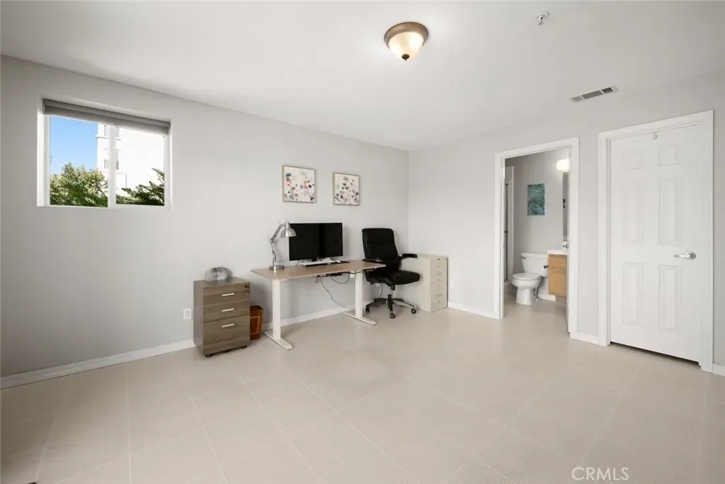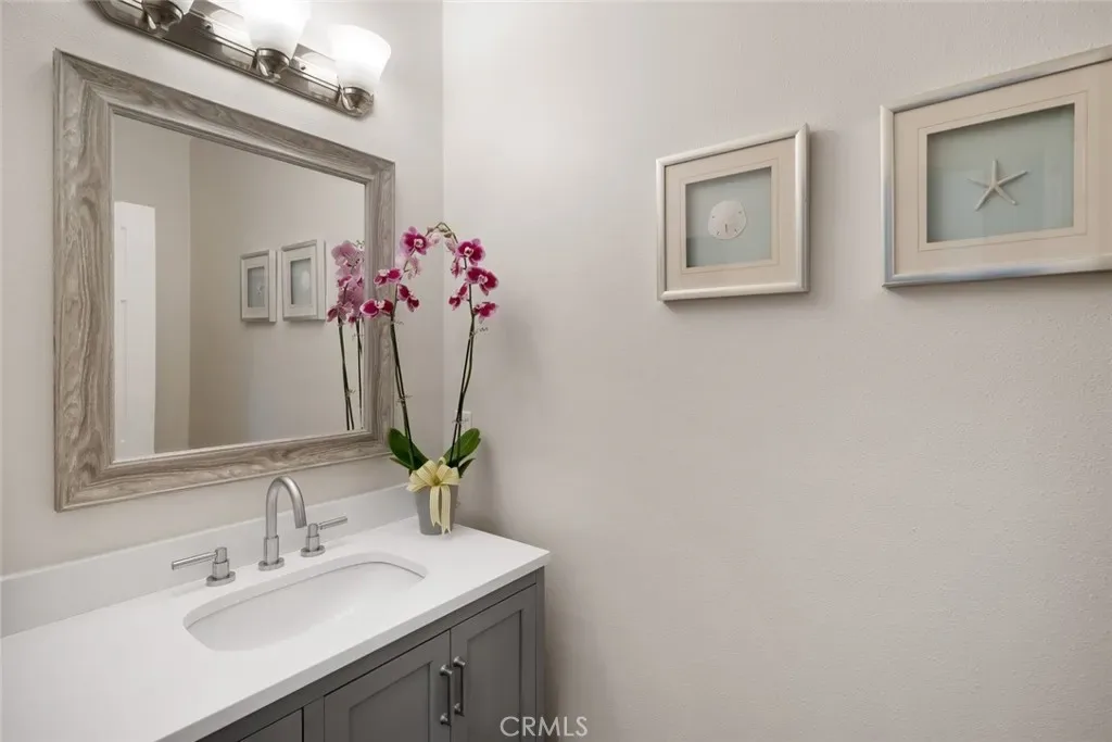 The primary bathroom, completed in 2021, offers a spa-like experience with a large zero-entry shower and dual vanities.