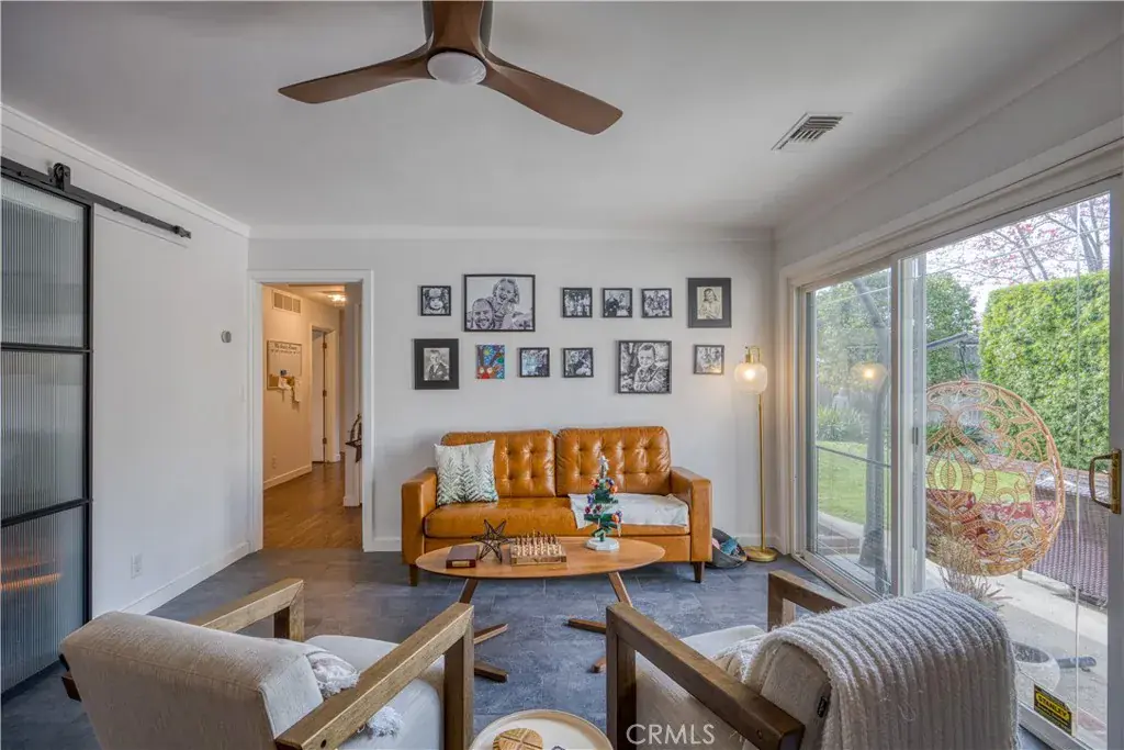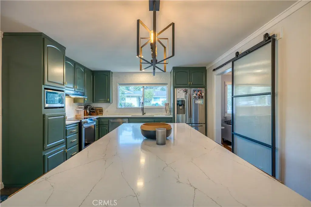 An inviting and elegantly remodeled single-level home showcasing a comprehensive floor-to-ceiling renovation, including a beautifully reimagined kitchen, luxurious bathroom upgrades, and high-end finishes throughout its 1,800 sq. ft. floor plan. The residence offers three bedrooms, two baths, and a versatile bonus room ideal for an office, den, or potential fourth bedroom. Stylish interior enhancements include gleaming hardwood floors, plantation shutters, and striking glass barn doors that separate the living room from the kitchen, along with an additional set dividing the kitchen from the den/office. The primary suite features sliding glass door access to the back patio and yard, as well as a luxurious en-suite bath with an expansive walk-in shower. The backyard provides a lovely view of Bishop’s Peak and offers ample space for entertaining, gardening, and outdoor enjoyment. Set on a desirable corner lot, the property also features leased solar, air conditioning, a cozy fireplace, and a finished two-car garage with generous storage. Ideally positioned within the highly sought-after Ferrini Heights neighborhood, just moments from top-rated Bishop’s Peak and Pacheco Elementary schools, scenic hiking trails, and the vibrant shopping and dining of San Luis Obispo’s charming downtown district.