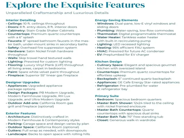 Set near the end of a private gated cul-de-sac within Avila Canyon Estates, this single-level new construction residence offers privacy, scenic surroundings, and refined Central Coast living. Positioned to capture views of the surrounding coastal hills, the home sits on an approximately 15,498± square foot lot with a landscaped front yard and fenced backyard. Spanning approximately 2,718± square feet, the home features an open-concept design with 10-foot ceilings and abundant natural light. The great room is centered around a 55-inch linear fireplace and a dramatic 20-foot glass wall with a 10-foot sliding door that opens to a covered patio, creating seamless indoor-outdoor living. The rear of the home faces north toward seasonal wetlands, mature trees, and rolling hills, while the front enjoys southern exposure and canyon views. The home offers four bedrooms, each with its own bathroom and closet, including a spacious primary suite and a well-appointed secondary suite. Both suites feature dual-sink vanities and walk-in closets, while the primary bathroom offers a generous layout designed for comfort and relaxation. At the heart of the home, the kitchen showcases quartz countertops, shaker-style soft-close cabinetry, satin nickel hardware, and an oversized island designed for both everyday living and entertaining. Recessed lighting and clean architectural lines complement the home’s modern farmhouse aesthetic. Additional features include owned solar, air conditioning, forced-air heating, EV charger pre-plumbing, and energy-efficient dual-pane windows. The property also includes a two-car garage plus an additional garage bay suitable for compact vehicles, storage, or recreational equipment. A limited number of homes remain available in Avila Canyon Estates, and depending on construction timing there may still be an opportunity to select certain finishes and upgrades. Located just minutes from Avila Beach, hiking trails, golf courses, and local wineries, this newly constructed home provides convenient access to many of the Central Coast’s outdoor and coastal amenities.
