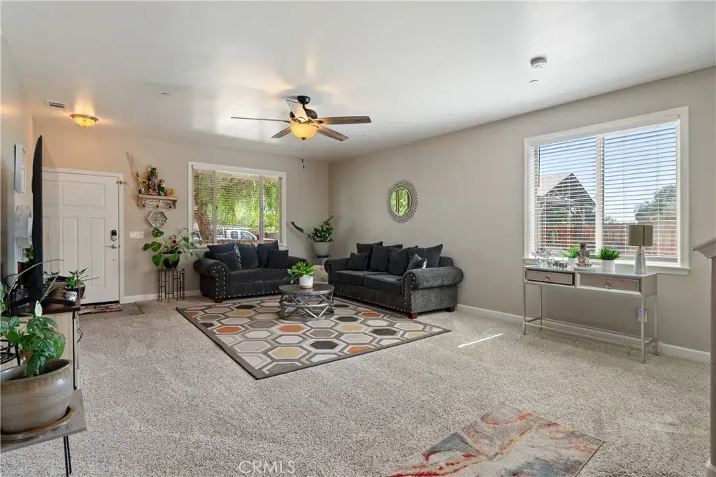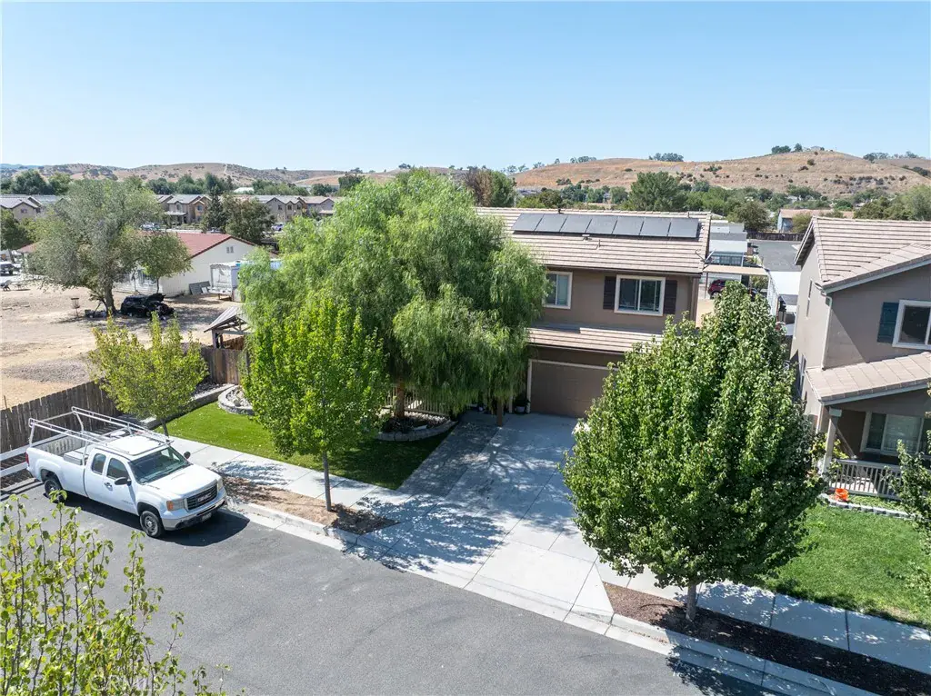 Welcome to 1263 Verde Place in the Jazzy Town community of San Miguel. This well-maintained 4 bedroom 2.5 bathroom home offers over 1,800 square feet of living space on one of the largest lots in the neighborhood. Located at the end of the street on a corner parcel, the property provides both privacy and a spacious yard. The open floor plan features a bright living area that flows into the kitchen and dining space. The kitchen is finished with granite countertops, black stainless steel appliances, and ample cabinetry. The main level also includes a half bath and an indoor laundry room. Upstairs you will find the primary suite with a walk-in closet, dual sinks, and a spacious bedroom. Three additional bedrooms, a full bathroom, and a hall storage closet complete the second floor. The yard is upgraded with artificial turf, a concrete patio, and a designated BBQ area. The covered front porch and drought-tolerant landscaping add to the curb appeal. Located just minutes from downtown San Miguel and a short drive to Paso Robles wine country, this home combines comfort, convenience, and value in a growing community.