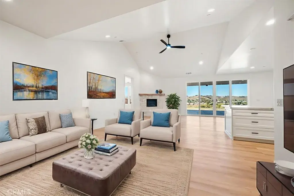 The living area blends comfort and style with a gorgeous gas fireplace, creating the perfect spot to sip cider, unwind, and watch the sunset paint the hills.