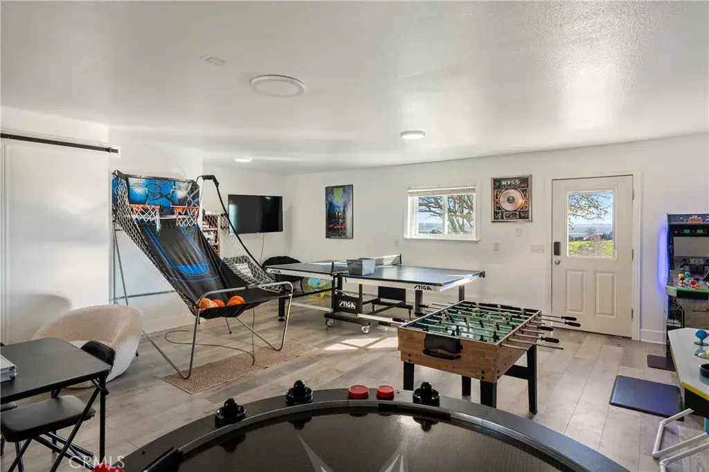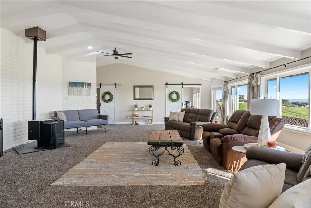 Welcome to 2245 Rancho Lomas Way, a picturesque ranch retreat nestled in the heart of Paso Robles’ Independence Ranch community. This expansive 2,260+/- single-level home, set on 10+/- acres, is a sanctuary for those seeking a blend of rustic charm and modern convenience. As you step through the front door, you are greeted by a spacious living room, boasting a wood-burning stove set against a brick accent wall, cathedral ceilings, and stunning views of the wine country landscape. Natural light floods the space, highlighting the thoughtful upgrades and meticulous attention to detail. Adjoining the living room is a dining area seamlessly connected to the remodeled kitchen. Here, culinary dreams come alive with updated cabinets, granite countertops, vinyl plank flooring, and a chic backsplash, all complemented by recessed lighting. The kitchen is a true heart of the home, designed for both intimate family dinners and grander gatherings as the French door opens to the rear yard where just around the corner, an artificial turf patio with a jacuzzi tub invites relaxation and social evenings under the stars. The primary suite is a haven within the home, featuring cathedral ceilings and an attached bonus room—ideal for an office or fitness room—offering inspiring views of the sprawling hills. The primary en-suite bathroom is equally impressive with a tiled step-in shower, a large closet with built-in vanity, and ample cabinetry. The home also includes 2 additional bedrooms, each with vinyl plank flooring and unique touches such as a bonus playroom or study area in the 2nd bedroom, and a Jack and Jill bathroom attached to the 3rd bedroom. The 2-car garage has been converted to a game room (video games are to be included) boasting a full kitchen and separate entrance. The property’s exterior is just as meticulously designed, featuring a carport adjacent to a brick patio set amongst refreshed landscaping with recently added fencing for privacy. Equestrian enthusiasts will be drawn to the graded area with single stalls, various fenced spaces, and water connections, offering a variety possibilities to customize and create an equine environment. Owned solar panels and numerous outbuildings, including a Seatrain, provide functionality and opportunity, making this home not just a residence but a lifestyle choice. Embrace the opportunity to own a piece of Paso Robles serene landscapes, where many sunsets may bring peace and a glimpse of the endless potential!