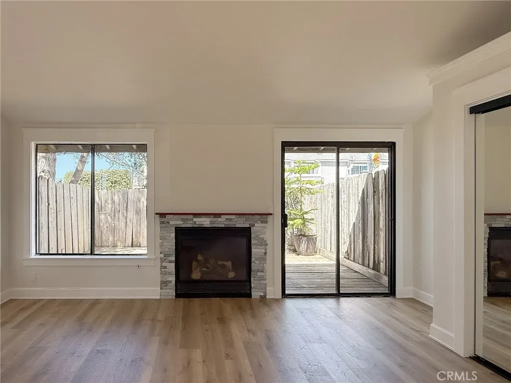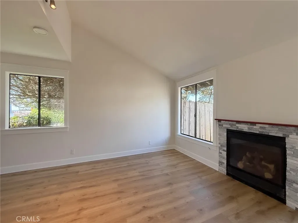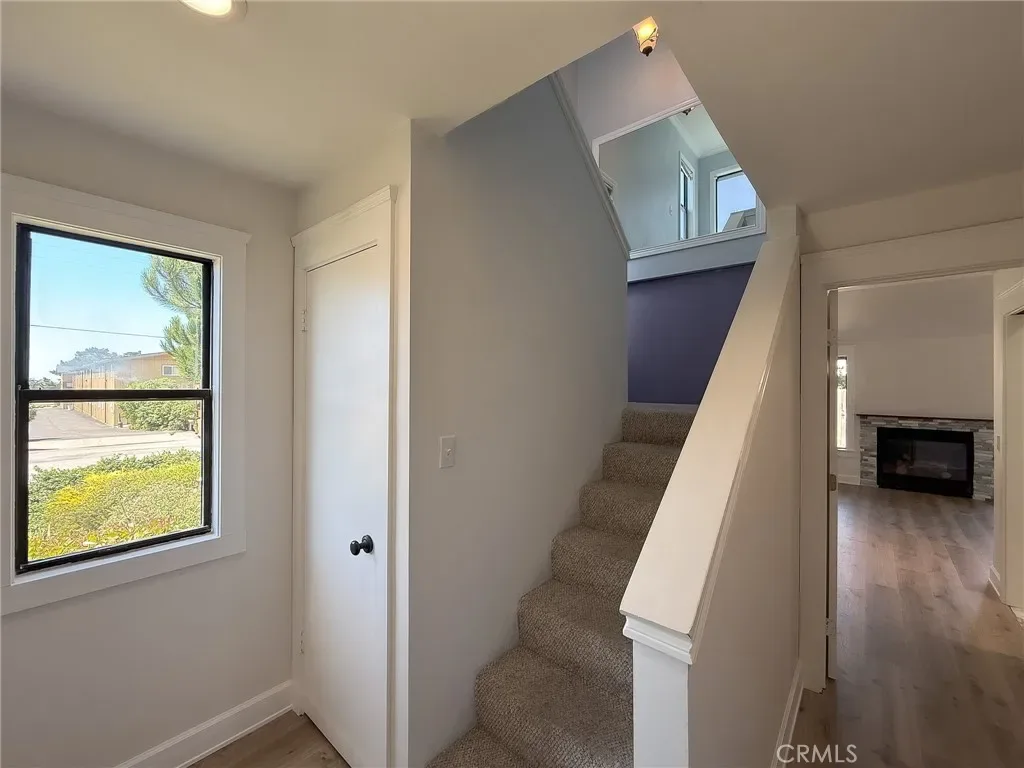 Just a few blocks from the beach in San Simeon, this end-unit condo offers a versatile layout with two bedrooms and two bathrooms along with peekaboo ocean views. The downstairs area may function as the main living room or as a private suite for an aging parent or guest. This level features new flooring, fresh interior paint, and includes a spacious room with an adjoining newly remodeled tiled bathroom with a roll-in shower, designed with ease of access in mind. The kitchen features a redesigned European-inspired, space-efficient design with an induction cooktop and compact dishwasher. Upstairs, you’ll find two bedrooms and a full bathroom, offering comfortable separation and privacy. Attached single-car garage with washer and dryer included. Enjoy coastal living at the southern gateway to Big Sur, with hiking, biking, surfing, fishing, and dining just moments away.