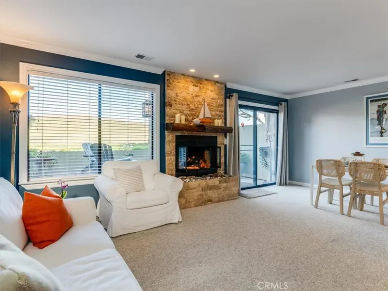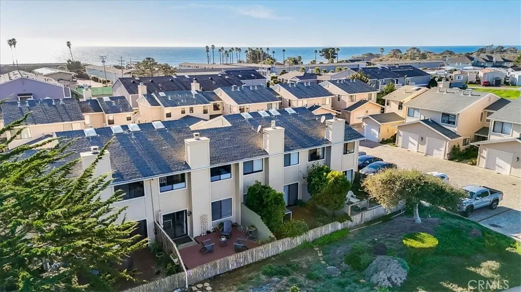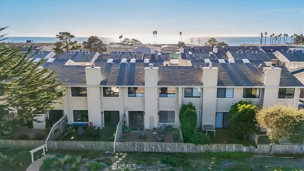 This peaceful coastal retreat offers the lifestyle you’ve been waiting for, where mornings begin with sunrises over rolling hills from your private back deck and evenings end with glowing ocean sunsets viewed from the spacious primary bedroom suite. Located just a short walk from the beach, the home enjoys a rare natural setting, with the Hearst Ranch—protected by a permanent conservation easement—as its eastern neighbor and the occasional zebra wandering by. The three-bedroom home features a generous primary suite with high ceilings, while the living and dining rooms are anchored by a beautiful stone fireplace with a natural wood mantel, creating a warm and inviting space for reading, relaxing, or entertaining, all enhanced by soaring ceilings. Move-in ready and meticulously maintained, the home is sparkling clean and finished in a soothing coastal color palette throughout, with crown molding, Berber carpet, an updated kitchen, dual-pane windows, and a new furnace. Recent upgrades include new up-down shades in the primary suite, new blackout up-down shades in the eastern bedrooms, a new Speed Queen washer and gas dryer, and a garage with newly built shelving. Blooming roses grace both the front and back gardens, complemented by drip irrigation in the front garden. The entire complex has been freshly painted and features attractive pavers, upgraded garage lighting, and well-maintained landscaping, all supported by low HOA fees and a well-functioning association. Whether as a holiday getaway, family home, or retirement retreat, this property offers a truly desirable location and an exceptional coastal living experience.