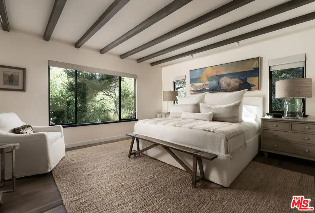As you approach the property, the first impression is unforgettable. A dramatic, expansive deck stretches across the front of the home, immediately defining the residence as a place created for gathering, entertaining, and savoring sweeping mountain views beyond. It establishes a striking presence and an elevated outdoor living experience, setting a refined tone for everything that follows. Surrounded by mature trees and beautifully composed gardens, the contemporary residence offers a rare sense of privacy, where landscape and architecture exist in seamless harmony with the home’s clean modern lines. The setting feels serene and intentional, creating a true retreat while remaining effortlessly connected to the best of Montecito living.Inside, the home unfolds with quiet sophistication. Soaring beamed ceilings, warm wood accents, and abundant natural light lend depth and character throughout. The living room, library, dining area, and kitchen flow gracefully together, forming spaces that feel open yet inviting, equally suited for intimate evenings or lively gatherings. Each room transitions naturally to the next, reinforcing an effortless sense of livability. The kitchen anchors the interiors as a central gathering place, beautifully finished with custom cabinetry, stone surfaces, and premium appliances, opening seamlessly to the surrounding living spaces. Every detail has been thoughtfully considered, blending modern design with comfort and ease. The primary bedroom and an additional bedroom are located on the main level, each serving as a peaceful retreat and complemented by its own en-suite bath. The lower level adds versatility with a private guest suite, along with a mudroom and laundry, ideal for extended stays or everyday convenience. Outdoors, the lifestyle continues in every direction. Lush gardens, an outdoor spa, and multiple areas for entertaining or quiet relaxation create inviting spaces to enjoy throughout the day. From mornings on the deck to evenings spent under the stars, the home offers a seamless connection between indoor living and its beautiful natural surroundings. Located within the Cold Spring School District, the property enjoys the advantage of being part of one of Montecito’s most desirable local school zones.