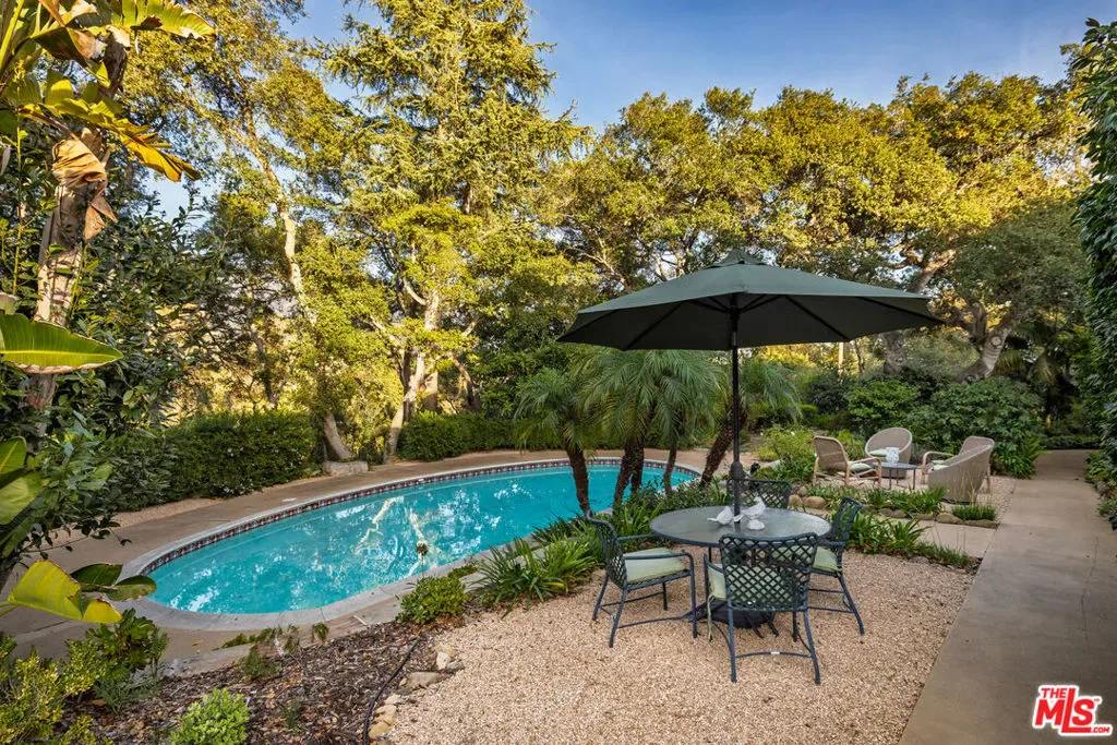Set amid more than an acre of lush Montecito grounds, this refined residence offers a quiet sense of grandeur and an elegant, effortless way of living. A soaring foyer with a sweeping staircase and chandelier welcomes you inside, where tall windows and French doors bring in soft natural light and create a warm, inviting ambiance. The formal living spaces capture the charm of classic Montecito living. A gracious living room, anchored by a traditional fireplace, opens to terraces overlooking the pool and gardensan ideal setting for gatherings of any size. The adjacent dining room and library provide versatile spaces suited for both intimate hosting and peaceful moments at home. The kitchen is bright and thoughtfully designed, featuring an expansive center island, stone countertops, and a wall of windows that frame the gardens. With generous cabinetry and double ovens, it offers a welcoming setting for everyday living and entertaining. Upstairs, each bedroom serves as a private retreat, complete with en-suite baths and balconies that take in tranquil landscape views. The primary suite is especially inviting, offering a sitting area, fireplace, and French doors that open to a romantic veranda. Outdoors, the grounds embrace the best of Montecito’s indoor-outdoor lifestyle. A sparkling pool is surrounded by mature oaks, colorful gardens, and patios ideal for relaxation or hosting. A versatile room near the pool offers added comfort and adaptability, ideal for guests or a variety of uses. Combining privacy, charm, and enduring style, this Montecito residence embodies refined living, where comfort and elegance come naturally and each setting enhances the beauty of daily life.