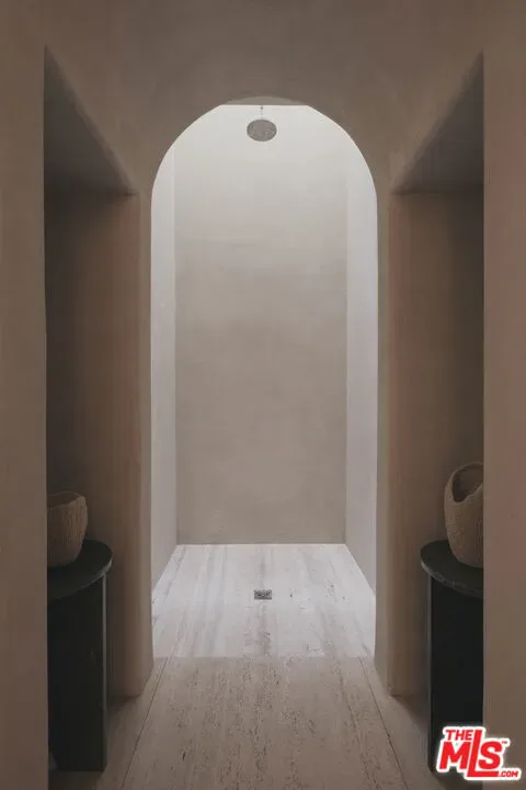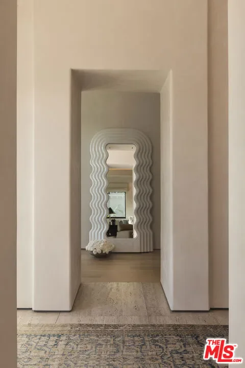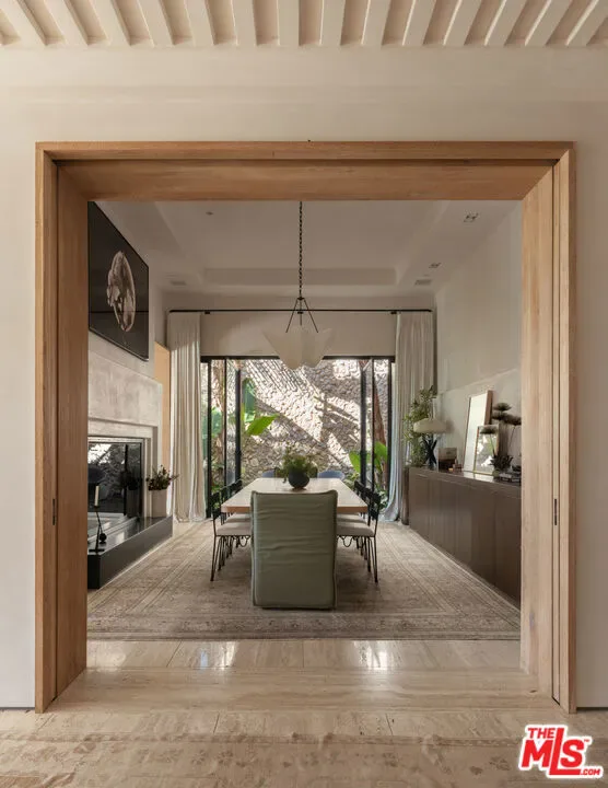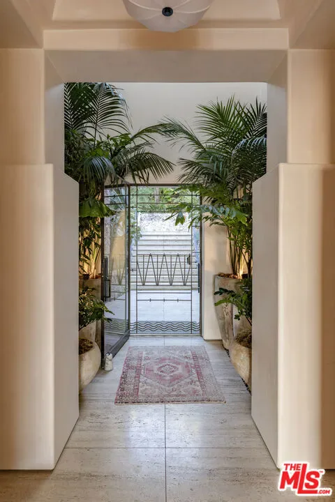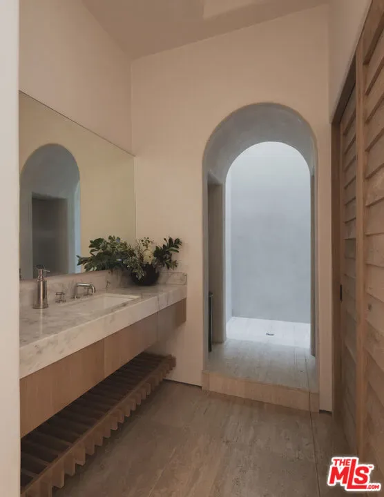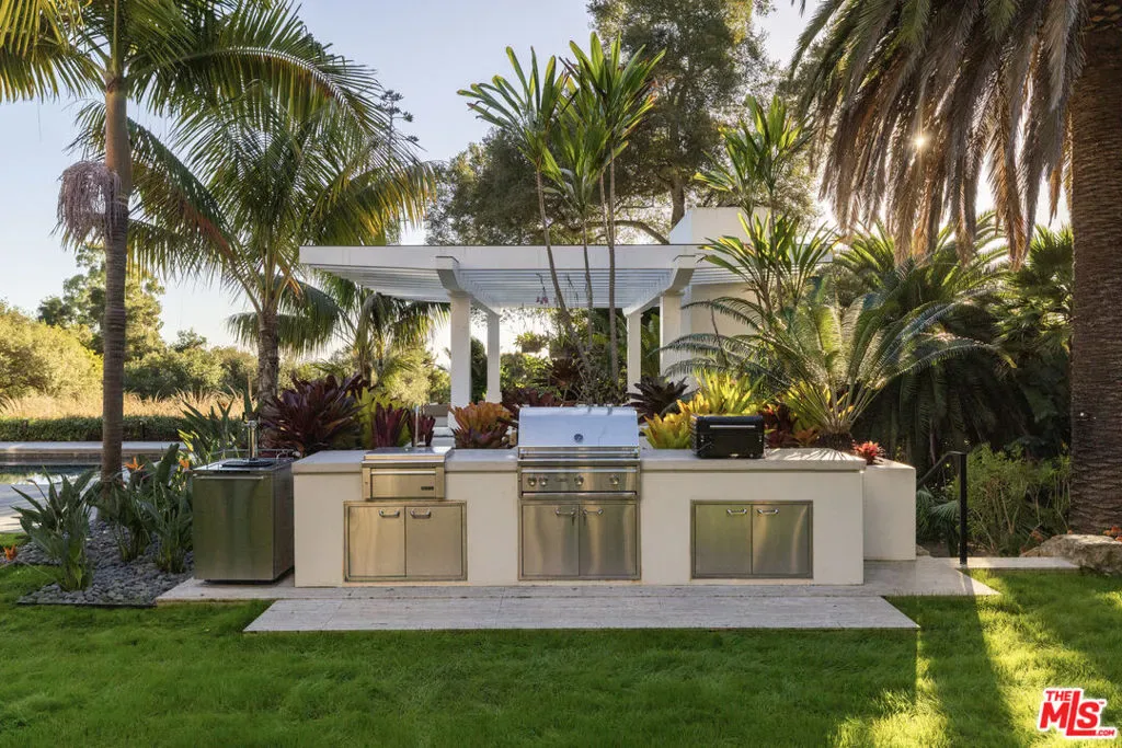 Perched above the coastline on 2.3 ocean-view acres in Hope Ranch, 4160 La Ladera Road is an architectural sanctuary where stone, light, and ocean views shape every moment. Thoughtfully composed, the estate blends contemporary Mediterranean lines with resort-style amenities to create a home that feels both sculptural and deeply livable. The entry is dramatic and processional. A double-height canyon of hand-laid limestone, framed by bold agaves and lush plantings, draws you in and guides you toward a glass-framed doorway with the first glimpse of the water beyond. Warm wood accents and carefully placed lighting amplify the sense of arrival and set the tone for what unfolds inside. Within, nature and architecture work in concert. Oversized pivoting iron-and-glass doors open the great room and main living areas to terraces, gardens, and the pool, turning the core of the home into a seamless indoor-outdoor pavilion. Long sightlines carry your eye to the horizon, while stone floors, high ceilings, and smooth plaster walls create a quiet, refined backdrop. The residence lives as three interrelated volumes. The lower level, wrapped in buff-colored Santa Barbara limestone, contains the primary gathering spaces and gives the structure a grounded, sculptural presence. Above, the upper floor is finished in light stucco and capped with a tile roof- a contemporary nod to Santa Barbara’s Spanish heritage. A wide central corridor unites these spaces and makes the home feel expansive yet effortless to move through. At the heart of the plan, the kitchen and adjacent dining areas open directly to an ocean-facing terrace and the 75-foot swimming pool, so daily life and entertaining naturally spill outdoors. Sleek surfaces and professional-grade appliances are balanced by warm materials and ever-present views, creating a space that works as well for a quiet morning coffee as it does for a large gathering. Two primary suites offer distinct expressions of luxury: a main-floor suite with pivoting doors to the gardens and a spa-like bath with soaking tub and separate shower, and an upstairs suite with sweeping ocean vistas, custom designer closet and a sense of retreat. Additional en-suite bedrooms, an office, media room, and flexible spaces round out a floor plan that supports both privacy and connection. Outside, the estate lives like a private resort. The long pool and spa stretch along the horizon, bordered by generous terraces for lounging and dining. A modern open-air pavilion with a fireplace becomes the natural gathering spot at dusk. Bocce ball, courtyards, an orchard, and layered botanical and cactus gardens create a series of outdoor rooms to enjoy from morning to evening. A detached structure-currently used as an ocean-view gym-opens to its own terrace and captures the golden Santa Barbara light. A separate spa building with a sauna, a temperature controlled wine cellar, and thoughtfully curated landscape elements complete a property designed for both daily comfort and unforgettable stays. Set within the coveted enclave of Hope Ranch, with exclusive access to the residents-only beach and more than 20 miles of riding trails, 4160 La Ladera Road offers the privacy of a retreat with the ease of world-class coastal living.
