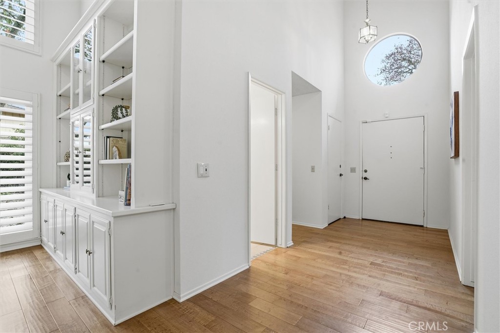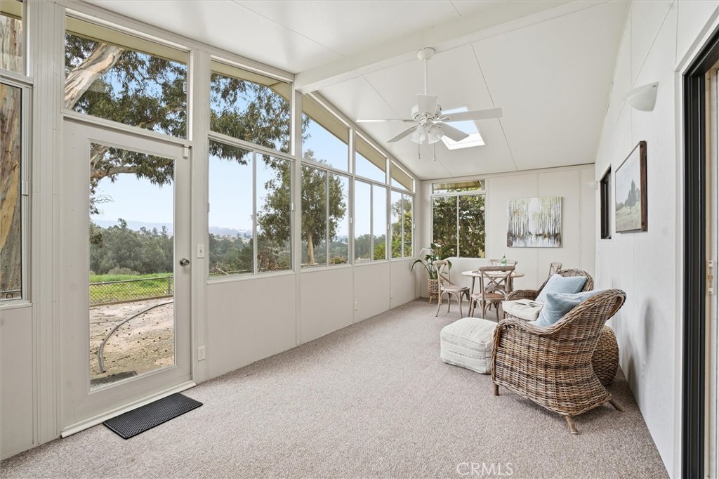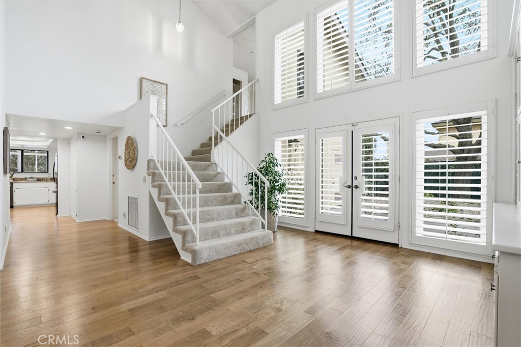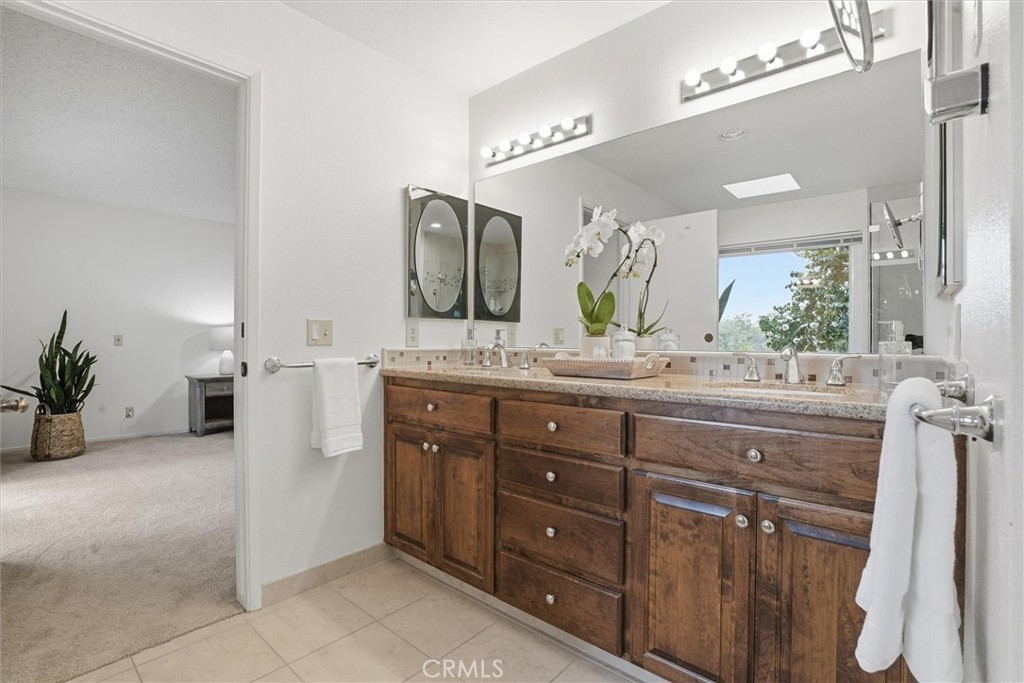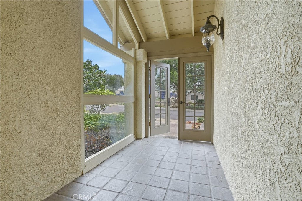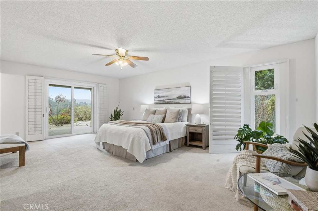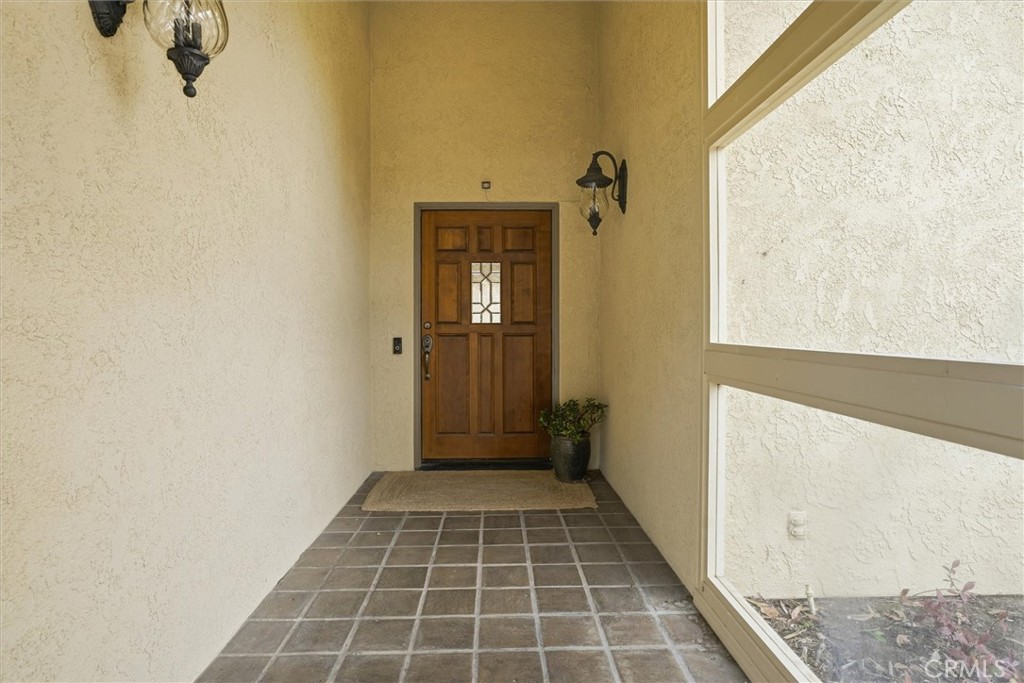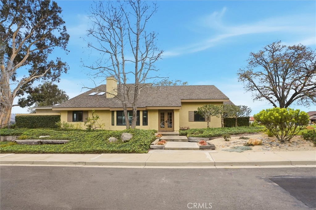 Welcome to this exquisite, custom-built corner-lot residence showcasing panoramic canyon views . A light-filled, enclosed glass vestibule welcomes you to the front entry and opens into a grand foyer with soaring cathedral ceilings, elegant French doors to the courtyard, and expansive windows that bathe the home in natural light.Designed for California indoor-outdoor living, the home features a charming enclosed sunroom overlooking the sweeping canyon vistas and opens to a generously sized backyard; ideal for both relaxation and entertaining. The main-level primary suite offers a serene retreat with a spacious walk-in closet, well-appointed ensuite bath, and French doors leading to the backyard, all framed by stunning canyon views. An additional bedroom and full bathroom on the main level provide an ideal layout for multigenerational living or guest accommodations. The main floor is completed by a formal living room with fireplace, a dining area, and a thoughtfully designed kitchen with abundant cabinetry. A large laundry room with extensive storage and direct access to the two-car garage adds everyday convenience. Upstairs, two additional bedrooms share a well-appointed hallway bath, complemented by ample closet and linen storage. One bedroom features a generous balcony perfect for taking in the picturesque canyon scenery.