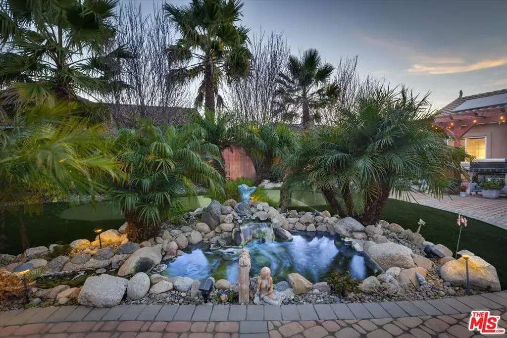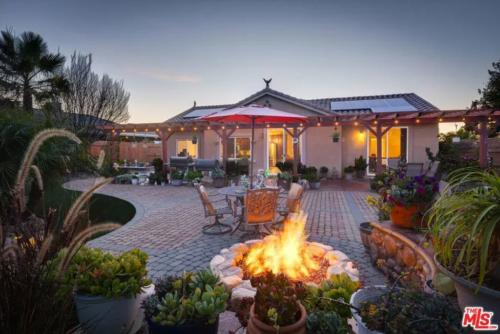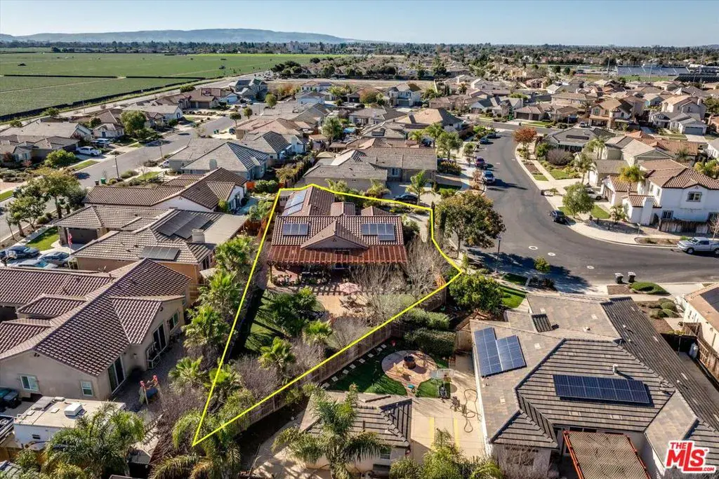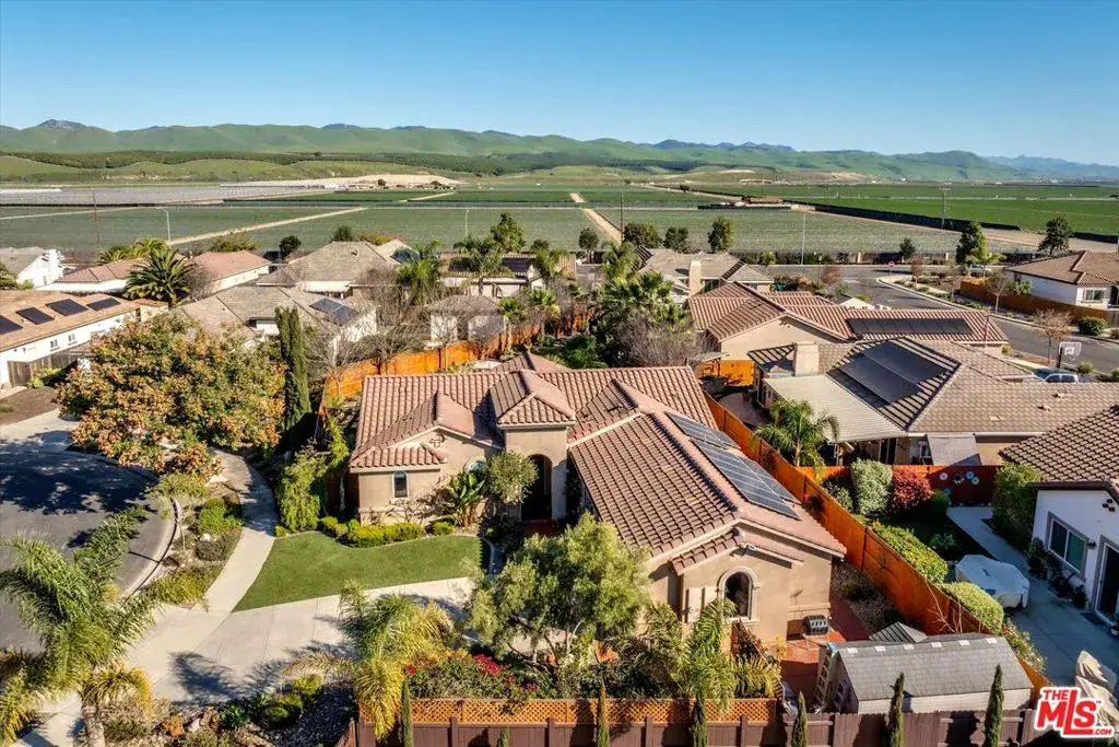First time on the resale market, this is the largest fully landscaped lot (12632 SF) in this premier development that has no HOA fees! Your own private garden awaits in Legacy at La Ventana located in Northeast Santa Maria; a serene setting to enjoy that morning cup of tea with an elegant fountain with a river feature, pond and two water falls, firepit with seating, and a putting green. Low maintenance ground cover, palm trees that decorate the space with a beautiful backdrop, a winding paver lined walkway, and a pergola draped with lighting. This property is a one story residence with smooth surface flooring throughout and featuring 4 bedrooms, 3.5 baths, and 1957 SF of well planned interior space. There are two primary suites with attached private bathrooms; the main owner’s suite features access and views of the backyard, a walk-in closet, separate shower and tub, dual sink vanity and enclosed water closet. The kitchen features dark cabinetry, quartz countertops, stainless appliances, gas cooktop, and a breakfast bar island for gatherings. The living space is an open floor plan with informal and formal dining spaces that spill out into the outdoor oasis of the back patio and garden. $30,000 owned solar system and utility shed included in sale. Well over $100,000 of improvements and exterior enhancements. Refrigerator, washer and dryer are negotiable. Great location close to Marian Medical Center & Pioneer Valley High School and a 25 minute drive to the Five Cities beach area. Come live your central coast dream today! Information deemed reliable but not verified or guaranteed by the broker.