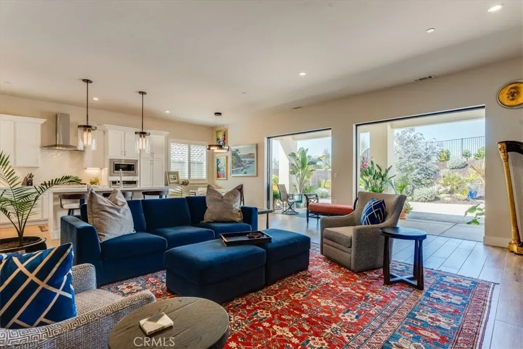 Welcome to the Hearst Plan at Rice Ranch in Orcutt – Step into luxury at Rice Ranch, where breathtaking estate homes meet the natural beauty of the countryside. The Hearst plan is a sprawling 2,406 sq. ft. of sophisticated living. This single-story home is designed for those who appreciate grandeur, comfort, and convenience. With 10 feet ceilings, every room feels open, airy, and full of natural light. The finishes are impeccable. From the white colored wood cabinetry and luxurious quartz countertops to the solid-core doors, every detail has been thoughtfully crafted. The tile made to look like wood brings beauty and durability in all the main areas including the primary bedroom and bedroom, while the custom backsplash, GE appliances, and premium Moen and Kohler fixtures elevate your kitchen and bathrooms to new heights of sophistication. There are so many custom feature to this home. This home is truly Indoor-Outdoor Living: The two stunning multi-glide pocket doors effortlessly blend the indoors with the outdoors, creating an ideal space for entertaining, relaxing, or simply enjoying the fresh air and serene surroundings. Rice Ranch isn’t just a community—it’s a lifestyle. Nature is right at your doorstep, with miles of walking, hiking, and biking trails that invite you to explore and embrace the great outdoors every day. As part of the Rice Ranch community, you’ll also have exclusive access to the Summit Club. Whether you’re swimming in the pool, soaking in the hot tub, staying fit in the gym, or challenging friends to a game of pickleball or Bocce, there’s always something exciting to do. The multipurpose activity room, pool table, barbecue areas, and prep kitchen are perfect for hosting family and friends.