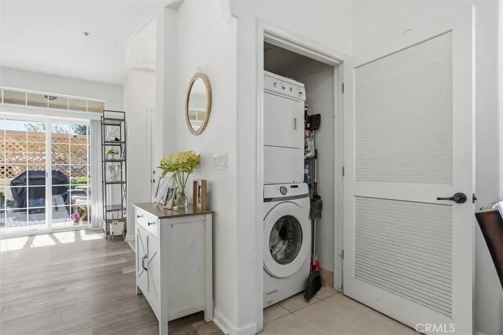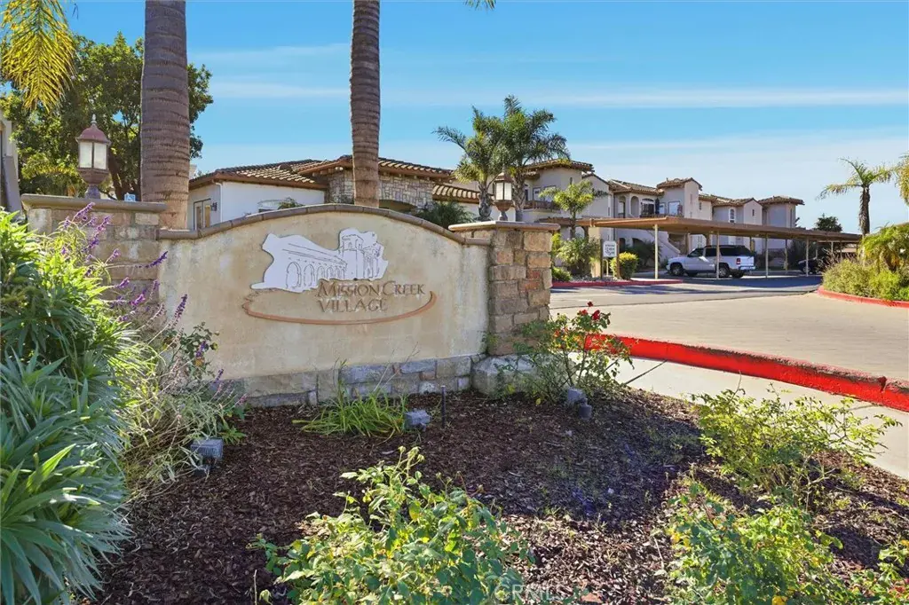 Bright and private lower-level corner condo in Mission Creek Village, a well-maintained community built in 2005, known for its low HOA dues and pride of ownership. Located at the back of the complex, this single-story, no-stairs home offers comfort, privacy, and an easy lifestyle at a compelling price. The interior is open and modern with high ceilings, dual pane windows, abundant natural light, south-facing windows and patio, and dual-pane windows throughout. On-trend vinyl flooring, neutral paint colors, newer light fixtures and appliances, and a brand-new water heater (Jan 2026) make the home truly move-in ready. The thoughtful layout includes indoor laundry, nearby guest parking, and a covered patio with additional storage. Both bedrooms are generously sized with walk-in closets and ceiling fans, both bathrooms offer glass-enclosed tub & shower combinations. Mission Creek Village is a beautifully cared-for community with a pool and clubhouse, centrally located off Santa Maria Way and close to shopping, dining, and everyday amenities. A modern, low-maintenance home you can comfortably enjoy for years to come.
