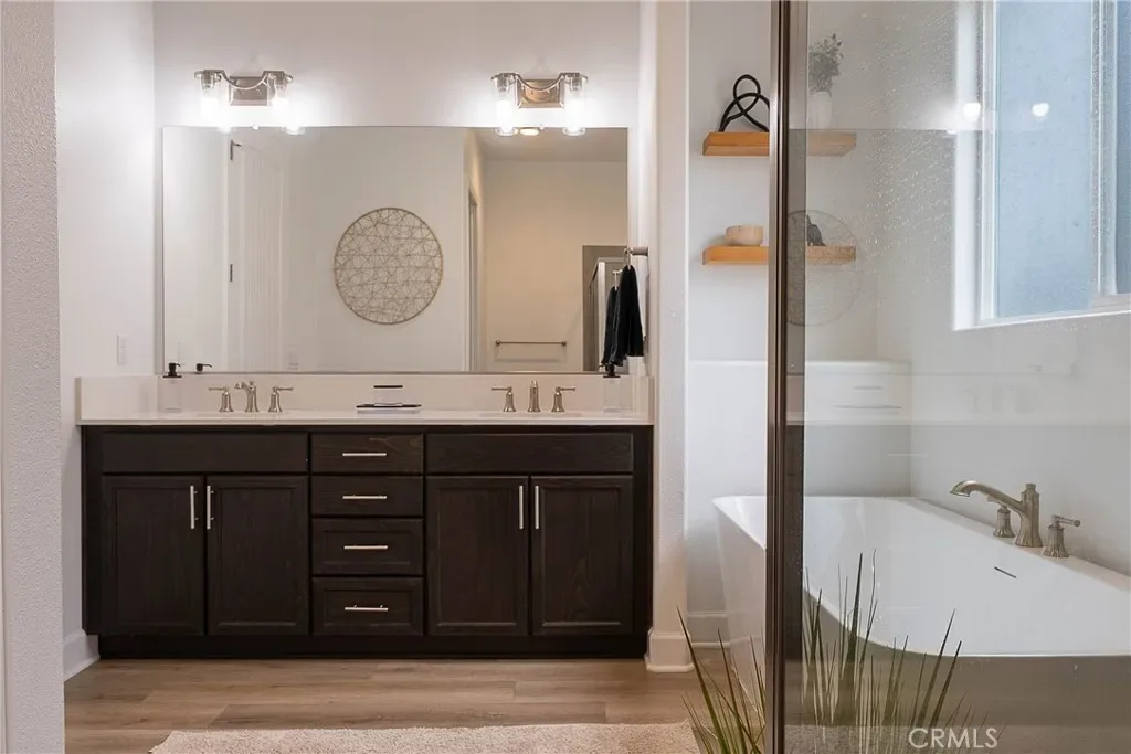 Designed with comfort and efficiency in mind, the home includes fully paid solar panels and thoughtful upgrades. The flexible floor plan offers 4 bedrooms of good size, and 3 bathrooms, 4th bedroom with its own private bathroom has private entry that can be used for guests, or a dedicated home office. The primary suite serves as a private retreat, complete with a soaking tub, separate enclosed shower area, and a serene, spa-inspired atmosphere.