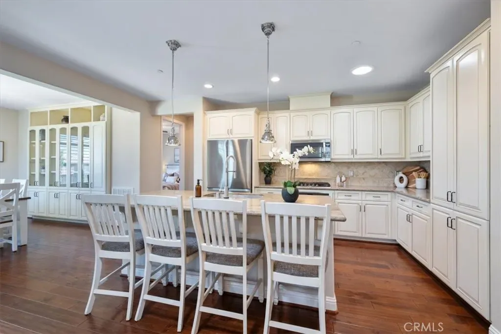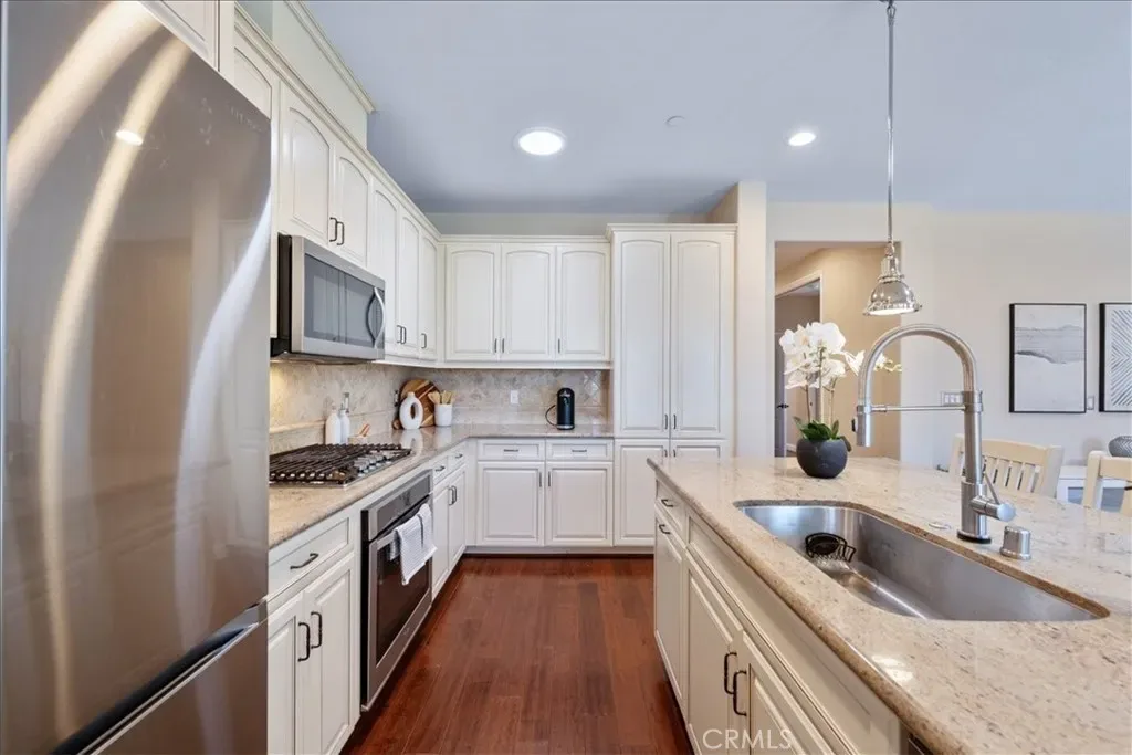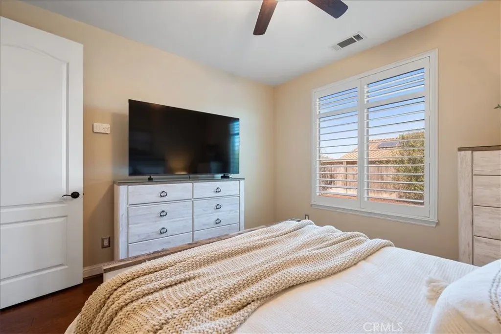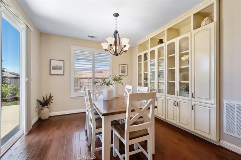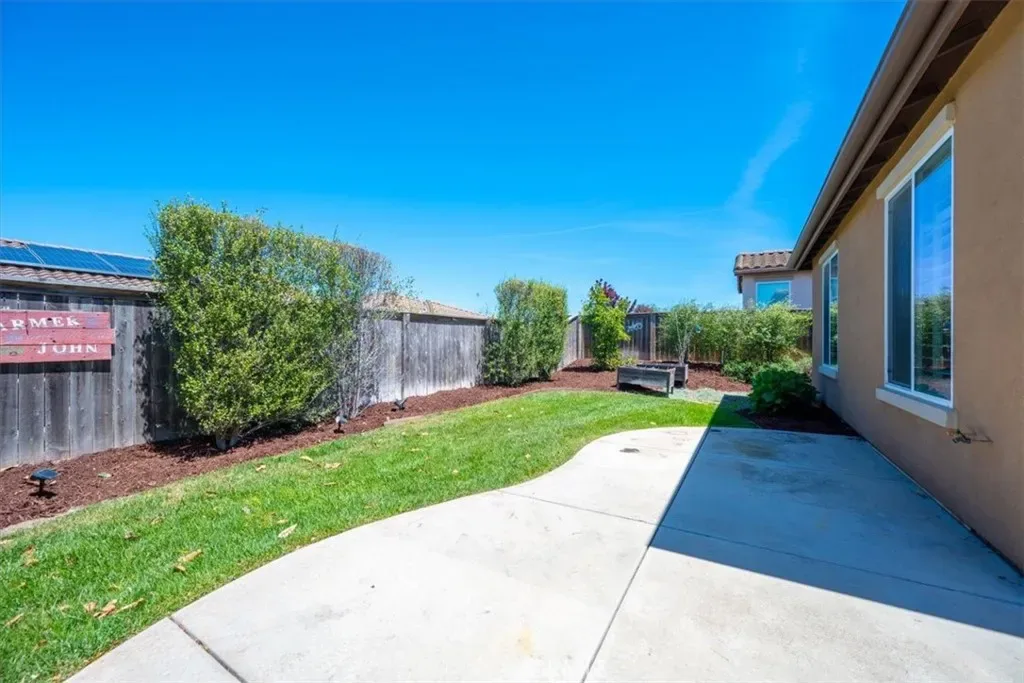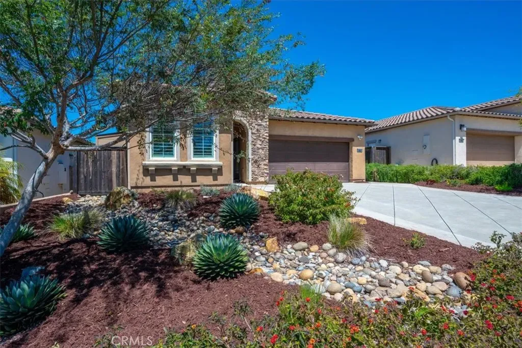 Welcome to Rice Ranch, Orcutt’s premier community where lifestyle, comfort, and thoughtful upgrades come together in this beautifully enhanced Cachuma model home. Offering 3 bedrooms, 2 bathrooms, and approximately 1,562± sq. ft., this 2014-built home delivers effortless Central Coast living with a refined, move-in-ready feel. Inside, you’re greeted by warm wood flooring, plantation shutters, and an open-concept layout designed for both everyday living and seamless entertaining. The centrally located kitchen features a striking granite island, stainless steel appliances, gas cooktop, tile backsplash, and upgraded cabinetry, all flowing naturally into the great room and dining area. A standout addition is the custom dining room cabinetry, a full wall of built-ins with glass doors offering both elevated design and functional storage, perfect for showcasing serving ware, glassware, or curated décor. The spacious primary suite is a peaceful retreat with backyard views, complemented by a well-appointed bath featuring opposing dual vanities, a large walk-in shower with seamless enclosure, generous linen storage, and a walk-in closet. A separate guest wing provides privacy for two additional bedrooms separated by a full bath, ideal for visitors or flexible living. This home is also equipped with meaningful upgrades that today’s buyers are actively looking for, including a whole-house water filtration system, EV charger, solar energy system, and enhanced garage storage. Additional features include a laundry room with sink and storage, multiple solar tubes for natural light, and a quiet whole-house attic ventilation system. Step outside to a private, fully fenced backyard featuring a small grass area and raised garden boxes–perfect for pets, gardening, and outdoor enjoyment while the professionally landscaped, drought-tolerant front yard offers beauty with minimal maintenance.Located in the highly desirable Rice Ranch community, you’re just moments from parks, a sports complex, scenic hiking and biking trails, and minutes to charming Old Orcutt with its boutique shops, restaurants, wine bars, and cafes. This is the kind of home buyers wait for, stylish, functional, and dialed-in with desirable upgrades that matter.