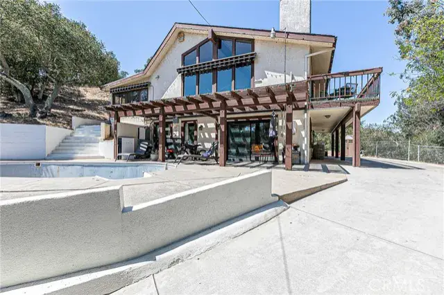 Nearly 5 acres with stunning views located close to the heart of Orcutt, near Clark and Bradley. This spacious home offers over 3,000 sq. ft. of living space, featuring 6 bedrooms and 2.5 bathrooms. The living and dining areas boast vaulted ceilings and floor-to-ceiling windows, filling the home with natural light and showcasing panoramic views of the property. A balcony runs the length of the living area and master bedroom, perfect for enjoying sunsets and outdoor living. The home includes a versatile entertainment room with a large retractable projector screen, ideal for a movie room or game space. A creek runs through the property, adding natural charm to the tranquil setting. Property highlights include water and electricity hookups available on lower portion of property, potential lot split option (buyer to verify), lower area of three-tiered property is ideal for a riding arena, horses, or other uses including small animal project barn, great for 4-H, FFA, or hobby farming. This property offers size, privacy, and convenience with easy access to Orcutt amenities. A must-see for those seeking a serene family home, equestrian property, or investment opportunity.