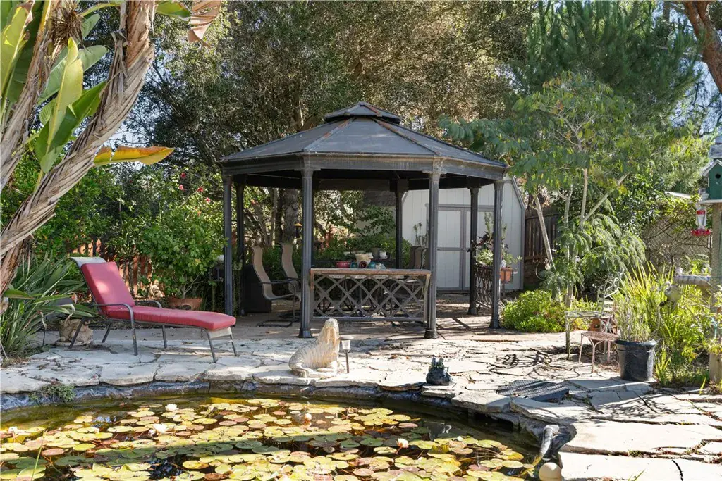 Paradise perfected–this beautiful, spacious 3-BR/2-BA home brings the best of both worlds: a large homesite with lush, masterfully cultivated yard adjoins a natural open space. Inside, the baths have been remodeled, as has the kitchen, with generous custom cabinets, a dining bar open to the great room, and a focal-point fireplace. The bamboo floors are as durable as they are beautiful. The attached family/ sun room features a high ceiling and is filled with light and gracious backyard views. This lovely home is framed with beautifully cultivated landscaping, several gazebos, and a tranquil pond, plus numerous paths and secluded settings. It is ideal for entertaining, as well as a private retreat. There are 3 storage buildings and a finished garage lined with cabinets, providing ample storage. This polished home is convenient to schools, parks, stores, and Vandenberg Space Force Base. Don’t miss this one-of-a-kind property. Your utopia awaits.