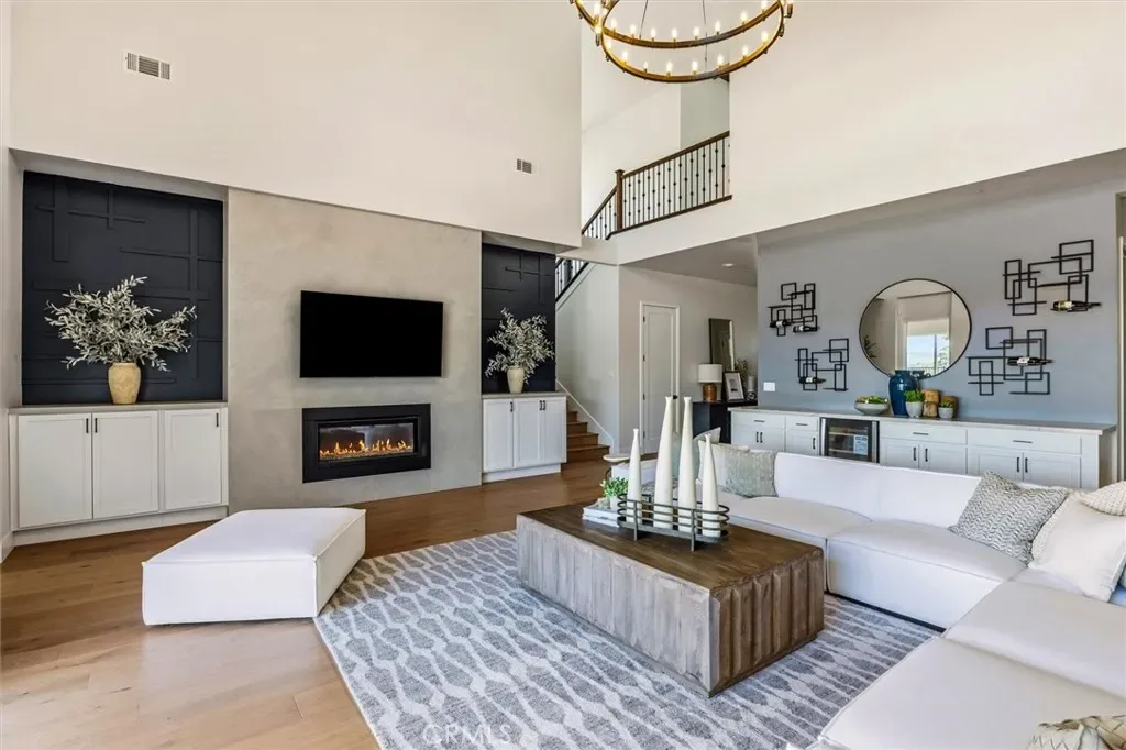 At the heart of the home, the grand great room impresses with soaring two-story ceilings, creating a bright and airy space perfect for gathering and entertaining. Designer finishes and high-end details are showcased throughout, reflecting the quality and craftsmanship of a true model home.