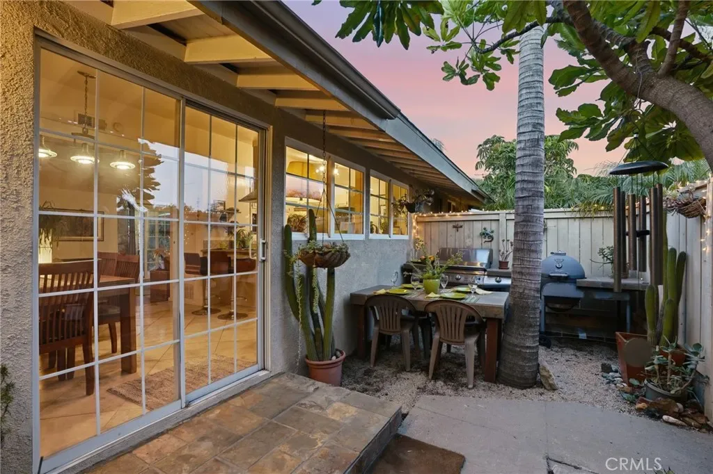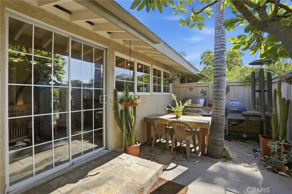 Sliding glass doors extend the living space outdoors, opening to a backyard and patio designed for effortless indoor-outdoor living, whether relaxing quietly or entertaining guests.