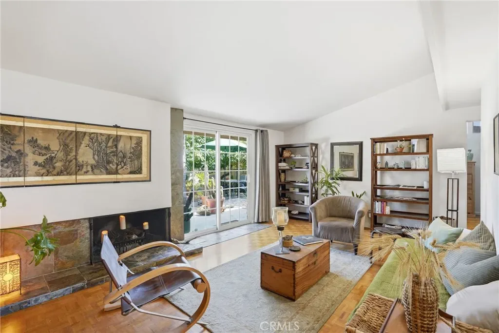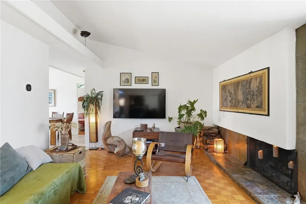 Step into this inviting single-level 3-bedroom, 2-bath home, where a distinct Palm Springs–inspired 1960s aesthetic meets classic midcentury modern design. Clean lines, an open layout, defines the main living spaces, creating an airy, light-filled atmosphere. At the heart of the home, a sleek, understated fireplace anchors the living room with a striking architectural focal point.