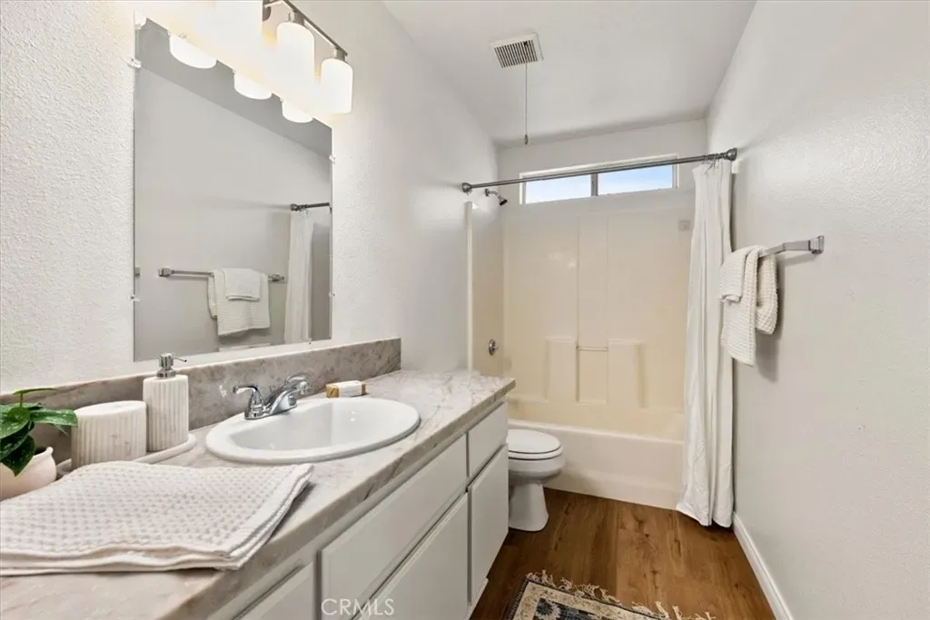 Both bathrooms have been upgraded with new granite countertops, updated sinks, and vinyl plank flooring. The primary suite features dual sinks, offering added convenience and functionality.
