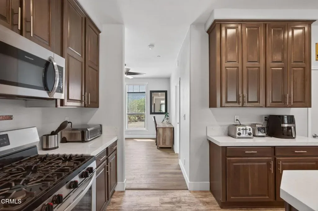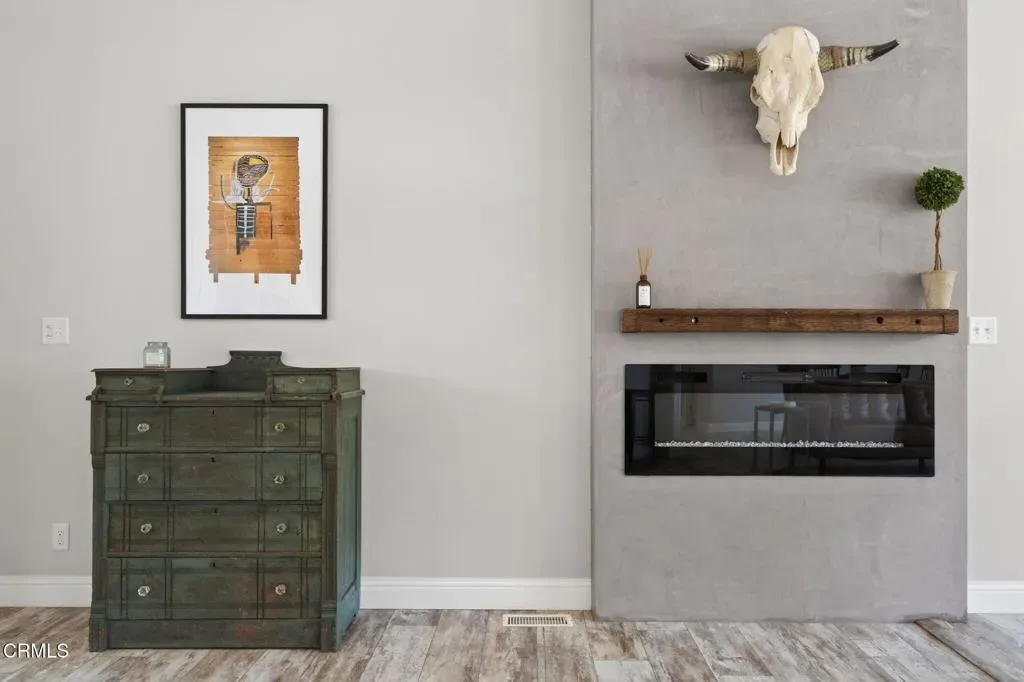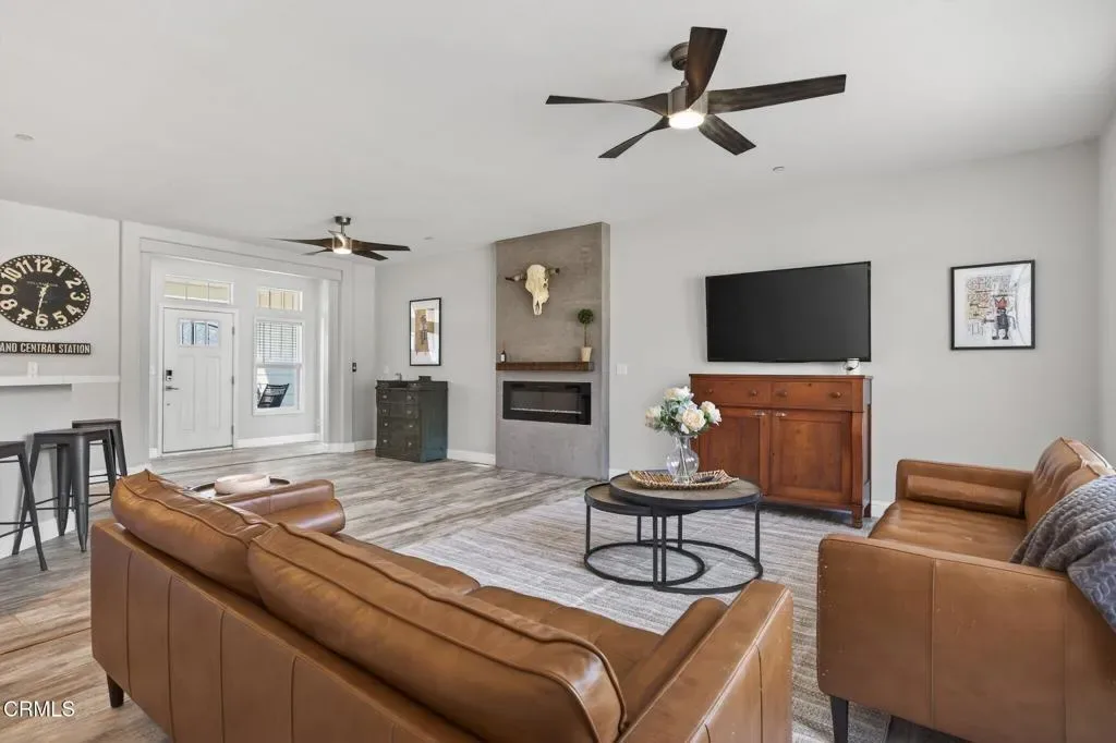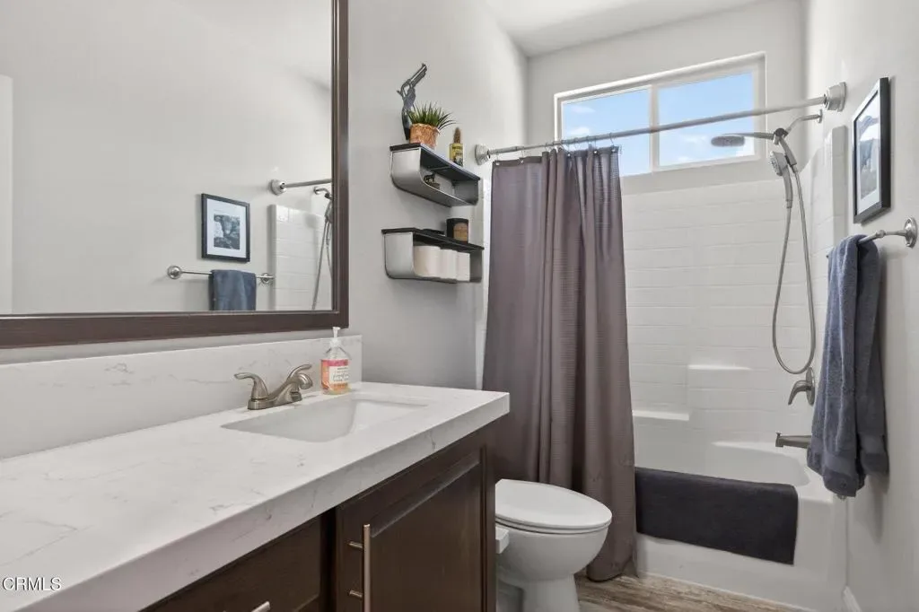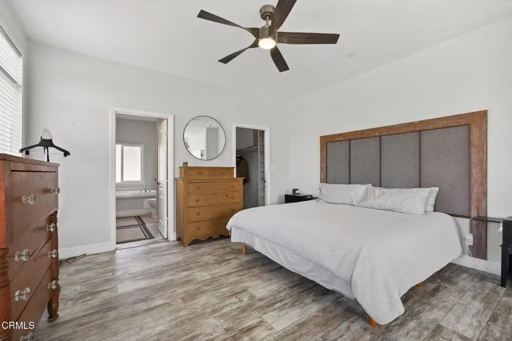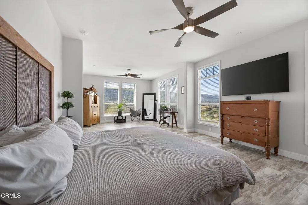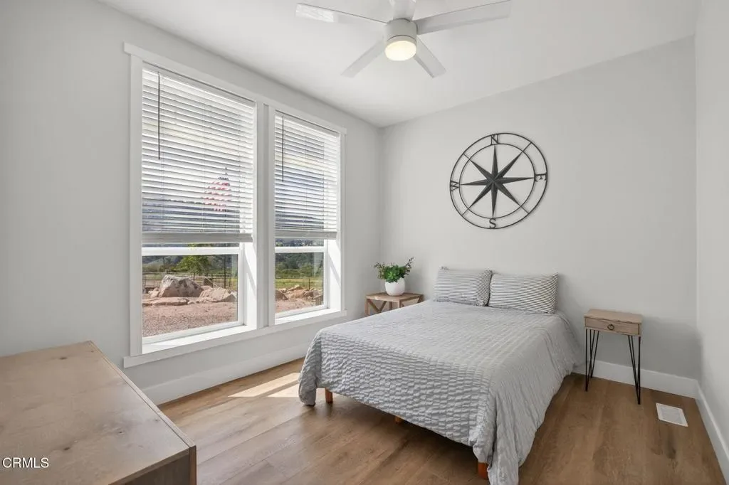 Dreaming of your own private retreat in the Ojai Valley? This exceptional approximately 20-acre property offers a rare opportunity to create your ideal ranch lifestyle amid breathtaking natural beauty. Showcasing panoramic views of the Upper Ojai Valley and Topa Topa Mountains, the setting is both peaceful and inspiring, perfect for those seeking space, privacy, and endless potential. Conveniently located just off Highway 150, the property provides easy access to the charming towns of Ojai and Santa Paula, known for their great restaurants and small town appeal, while still offering a serene, country living experience under star-filled skies. The land features a blend of usable flat areas and scenic terrain and possibilities of horses, orchards and gardens. A beautifully designed home offering over 2,300 sq ft of living space, showcasing a modern farmhouse style throughout. The interior features custom cabinetry, premium countertops, and a spacious kitchen island that opens to a warm, farmhouse inspired living area. Large windows fill the space with natural light and frame scenic views. The home includes 4 bedrooms and 3 full bathrooms, highlighted by a luxurious primary suite with a cozy sitting area, walk-in closet, and a spa like bathroom complete with a soaking tub. Additional features include a dedicated office space and a convenient laundry room. A charming 1 bedroom, 1 bathroom unit featuring its own kitchenette with wood countertops and a comfortable living area, ideal for guests or extended stays. The space also includes luxury vinyl flooring and a bathroom with a shower accented by subway tile extending to the ceiling.