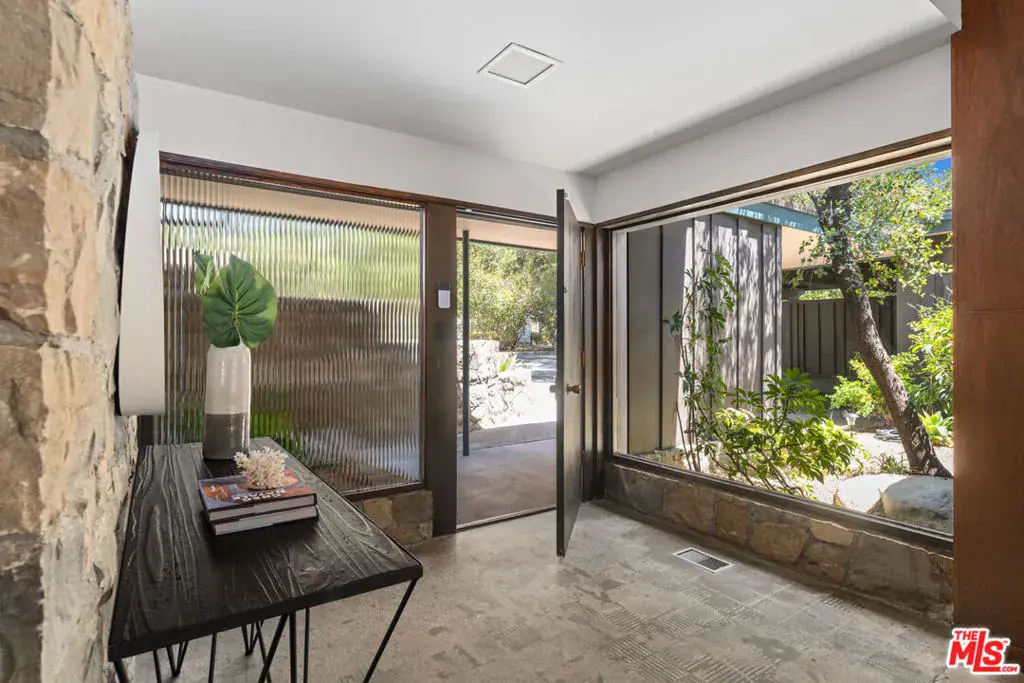 This stunning one-story mid-century modern home is located in the coveted “Oaks” neighborhood of Santa Paula and is just minutes from the beaches of Ventura and downtown Ojai. Designed by renowned John Stroh of Wilson, Stroh & Wilson architects in 1957, the home has soaring ceilings, walls of glass, clerestory windows and original walnut paneling & cabinetry. The dining room features pocketing “Shoji” doors, a beautiful detail, as Stroh was known to incorporate Asian inspired features into his designs. The bathrooms have been thoughtfully updated with “penny-tile” floors while retaining their pristine, original tile-work counters & baths. The charming eat-in kitchen opens to the expansive rear terrace and deck. The property is nearly half an acre and sits amidst a perimeter of massive California Oak Trees with lawns front and back…. creating a true park-like setting. Other details include two zones of heat & air, three water heaters, laundry/utility room and a large storage room at the rear of an over-sized carport. This is an exciting opportunity to own an architectural home in a prime location that’s close to LA, Santa Barbara & so much more.