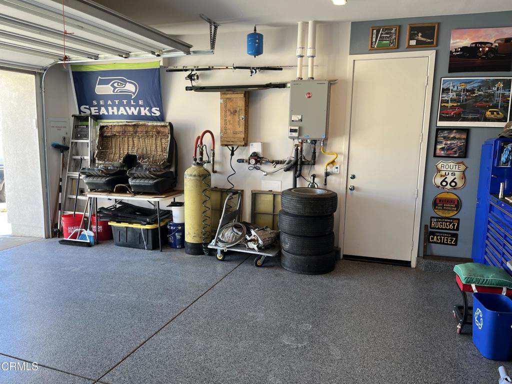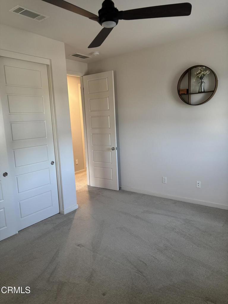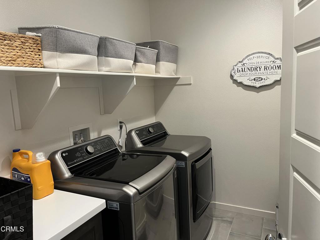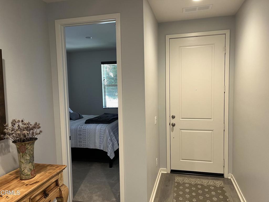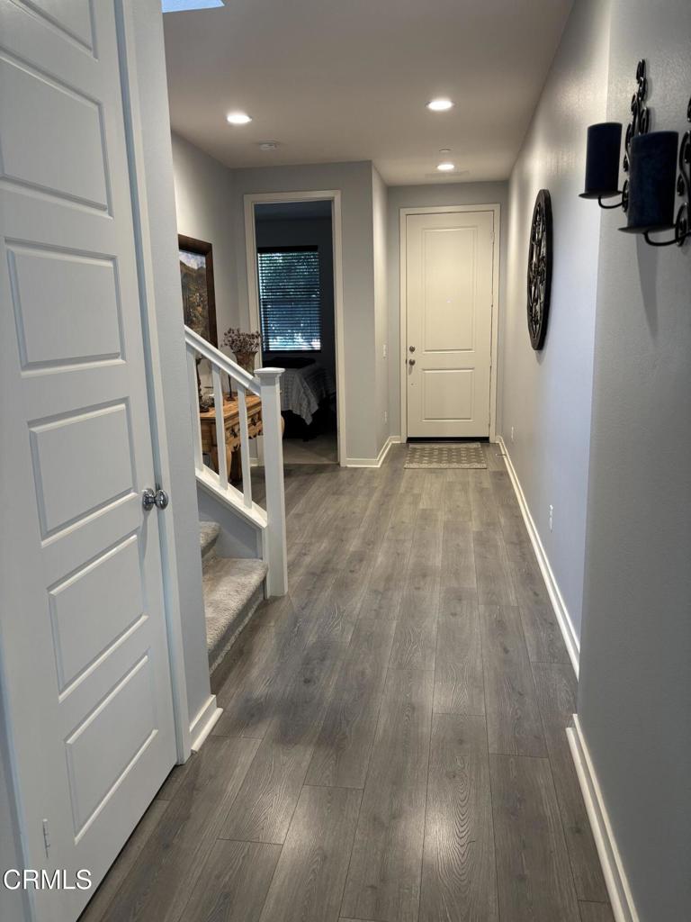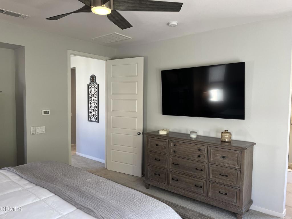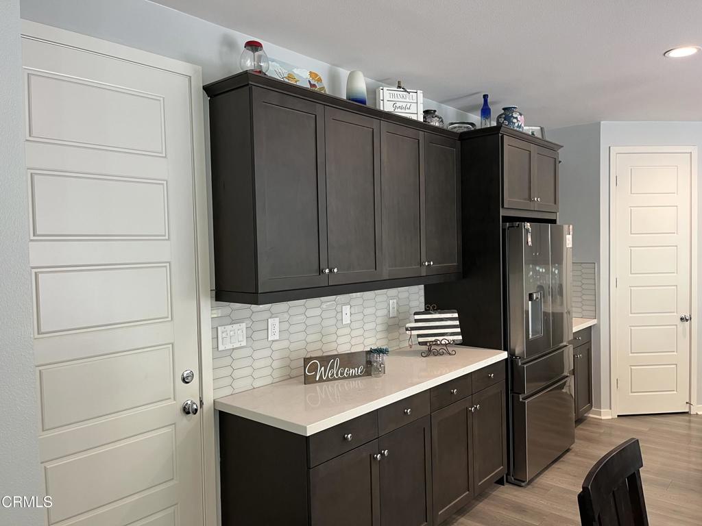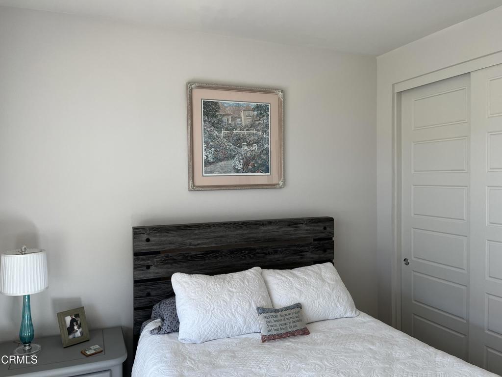 Newer 2-story, 4-bedroom, 3-bath home sits on a corner lot, nestled against the hillside at the end of the block and is Move In Ready. The main level features one bedroom and full bath ideal for elderly family or guests. The open-concept flows seamlessly from family room to dining area into a modern kitchen with quartz countertops, tiled backsplash, large island and separate pantry. Upstairs, a versatile loft area can serve as office space or convert to a 5th bedroom. Two good-sized bedrooms share a dual-sink hall bath on the south side, and the master suite features an en-suite tiled shower and walk-in closet accessible through the bathroom. Upstairs includes the laundry room. Throughout, the home showcases dual-pane windows, custom window coverings, ceiling fans, quartz countertops, recessed lighting, central A/C, carpeted bedrooms, and custom paint. Outside, designer pavers create an inviting backyard with retaining wall, drainage system, automatic sprinklers, and a side storage shed–all framed by beautiful hillside views. The 4-car driveway includes dual side gates providing easy RV and boat access. The garage includes epoxy flooring, cabinetry, shelving, tankless water heater, and EV charging hookup. 15 miles to Ventura beach.