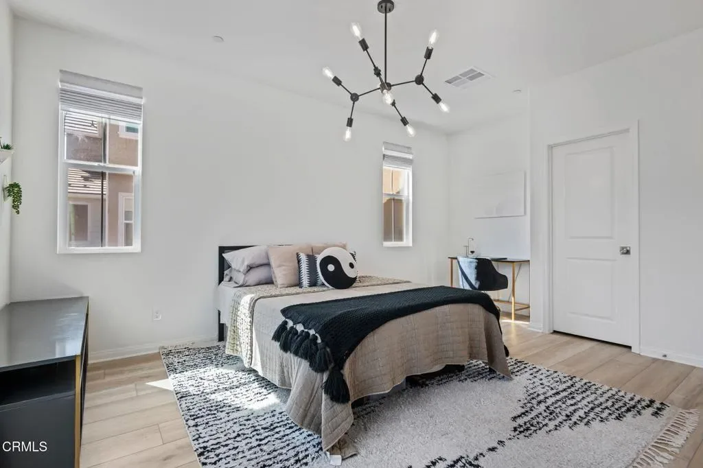 Welcome to this beautifully upgraded 2021 home in the desirable Harvest at Limoneira community. Designed with modern living in mind, this flexible floor plan offers 3 bedrooms, a spacious loft, and 3 full bathrooms, including a convenient oversized downstairs bedroom with an adjacent full bath.Step inside to find thoughtful upgrades throughout: Cali Vinyl longboard flooring downstairs and in all bedrooms, fresh Berber carpet on the stairs and loft, and custom Bali Roman blackout shades. The gourmet kitchen boasts a striking Italian tile backsplash, stainless steel appliances, an oversized island with bar seating, and an owned reverse osmosis system.The inviting living room features an added electric fireplace for warmth and ambiance, while the upstairs offers a dedicated laundry room, generous loft, and a large primary suite with a walk-in closet. Every bedroom enjoys its own walk-in closet for exceptional storage.Outdoor living is just as impressive with a patio yard featuring pet-friendly turf, river rock accents, and tropical landscaping–perfect for low-maintenance enjoyment. The garage is fully optimized with slat wall storage and overhead racks, making organization effortless.Additional highlights include leased solar for energy efficiency and stylish upgrades throughout. Best of all, the Harvest at Limoneira community offers resort-style living with a pool, spa, kiddie pool, full gym and yoga room, community garden, multiple playgrounds, parks, and scenic walking paths. Additionally there is a large farmhouse and multiple locations for residents to enjoy for party rentals. This move-in ready home blends style, function, and comfort–offering the perfect balance of indoor and outdoor California living. ASSUMABLE FHA loan at 2.875% for qualified buyers!!