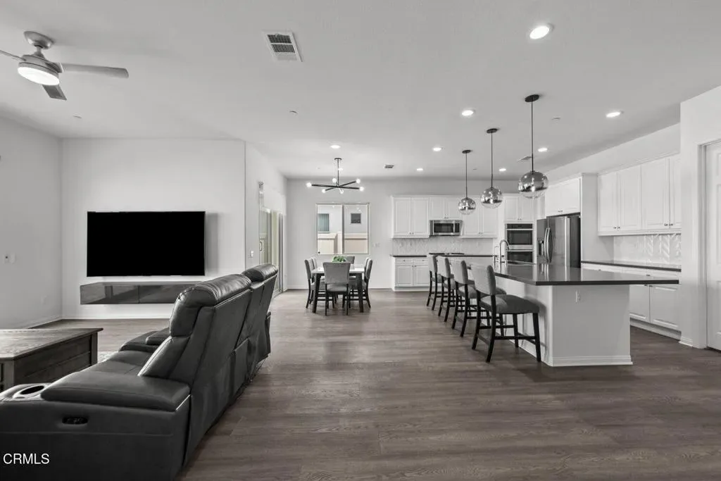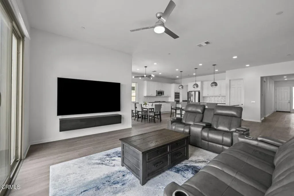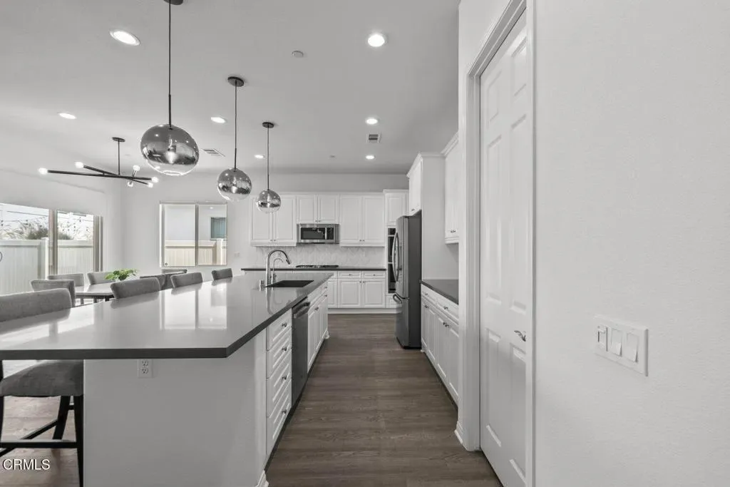 Welcome to 2075 Seville Drive, located in the highly sought-after Harvest at Limoneira community. Single-story homes in this neighborhood are limited and this move-in ready residence is one of them.Built in 2020, this 3 bedroom, 2 bathroom home offers approximately 1,950 square feet of thoughtfully designed living space, featuring high ceilings, upgraded flooring, and a bright, open layout that feels both modern and inviting.The spacious hallway leads you into the heart of the home, where the kitchen, dining, and living areas come together seamlessly. The kitchen is designed for both everyday living and entertaining, complete with quartz countertops, an oversized island with bar seating, and ample storage. Natural light pours in through dual sliding glass doors, creating a seamless connection to the backyard and enhancing the indoor-outdoor lifestyle Southern California is known for.The primary suite is privately situated and offers a true retreat, featuring a spa inspired bathroom with dual vanities, a soaking tub, a separate shower with upgraded finishes, and a generously sized walk-in closet.Additional bedrooms are well-appointed with detailed finishes and natural light, offering flexibility for guests, a home office, or growing households.The backyard provides the perfect space to relax or entertain, with easy access from the main living areas. A 2-car garage and driveway offer convenient parking and additional storage.Residents of Harvest at Limoneira enjoy resort-style amenities including a fitness center, pool and spa, walking trails, sports fields, playgrounds, BBQ and fire pit areas, and community gathering spaces.Located just minutes from local dining, cafes, and shopping in Santa Paula, with easy access to the 126 freeway connecting you to Ventura, Oxnard, and beyond.