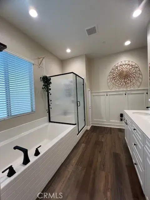 Assumable FHA loan available with low interest rate of 2.25% call for details. Welcome to this beautifully upgraded single-story home offering comfort, style, and modern living. Featuring 3 bedrooms, 2 baths, and a spacious bonus room, this home boasts an open and inviting layout with 10-foot ceilings, recessed lighting, and luxury vinyl plank flooring throughout. Enjoy upgraded carpet in all bedrooms and the bonus room for added comfort. The spacious kitchen is a true centerpiece, showcasing stone countertops, soft-closing cabinets and drawers, premium appliances, a large kitchen island with breakfast seating, and plenty of counter and cabinet space—perfect for cooking and entertaining. Bathrooms feature matching stone counters, self-closing drawers & cabinet, with sleek matte black fixtures throughout, including faucets, shower trim, door handles, and hinges. This home is designed with smart and energy-efficient features, including an energy-efficient HVAC system, tankless water heater, and a leased solar system. The smart home app monitors the garage and outdoor lighting, with smart switches controlling the porch and back patio lights for convenience and security. Additional highlights include custom 9-foot doors, a designer front door, 2-inch blinds, and elegant moldings and trims throughout. The low-maintenance backyard offers a concrete patio and side yard, vinyl fencing, and a widened driveway for extra parking. Located in a desirable community with resort-style amenities including a pool, spa, children’s pool, fitness center, yoga room, clubhouse, parks, soccer field, community garden, and dog park. With over $100,000 in upgrades, this home perfectly blends modern technology, energy efficiency, and designer finishes—don’t let this one get away!