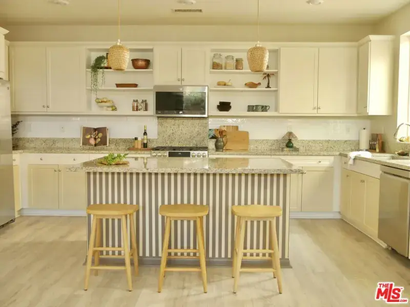 Welcome to Resort Living at the Harvest Community with 225 acres of open space, parks, bike paths and hiking trails. Nestled within this enclave, this home is a very impressive turnkey, with nearly 2000sf of comfortable and stylish living space, with 3 bedrooms (plus a loft) and 3 baths. It’s a beautiful wagon-wheel chandelier that levitates over the main seating area from its 20-foot ceilings. And it’s 8ft, “old-growth wood” encased panoramic patio doors open to the bamboo walled, gravel filled outdoor area with suspension bridge-inspired, natural-jute/manila rope patio covering, built-in seating, and raised “whiskey-barrel” fire pit, and a cute water feature that reflects the natural history of the Santa Paula area. The open layout seamlessly connects the Kitchen to the “Great Room” to the boho indoor/outdoor area. The chef-inspired kitchen is the heart of this home, featuring a large center island, granite counters, custom bamboo pendants, top-of-the-line stainless steel appliances, a walk-in pantry, and plenty of storage. Bringing groceries into the kitchen from the attached, built-in garage is a breeze, and having 2nd primary bedroom downstairs is a valuable asset. Throughout, there is new flooring with colors that bring a feeling of warmth to this special home. The upstairs has a custom rail with geometric iron work and more repurposed “old-growth wood” as a railing cap. The generous upstairs primary has a large walk-in closet (with automatic lights), an ensuite bathroom with a dual-sink counter, and separate shower and tub areas. The toilet area is also separated from the main bath. The versatile loft can be used as an office, theater, or even as another bedroom. The RING camera doorbell lets you see who’s at the door, and the smart lock allows you to open the door remotely for guests. Telling “Alexa” to turn up the thermostat or dim the lights or instructing your Wi-Fi-connected LG dishwasher to run during the day when the solar panels are producing. makes it even more fun. The Waterdrop filter system not only gives you the cleanest water, it tells you how clean: with TDS parts per million on its display. The pictures will tell you this is more than just a home, it’s a rare chance to buy your own private, customized retreat in one of Ventura County’s most up-and-coming resort neighborhoods. Don’t miss out on the opportunity.